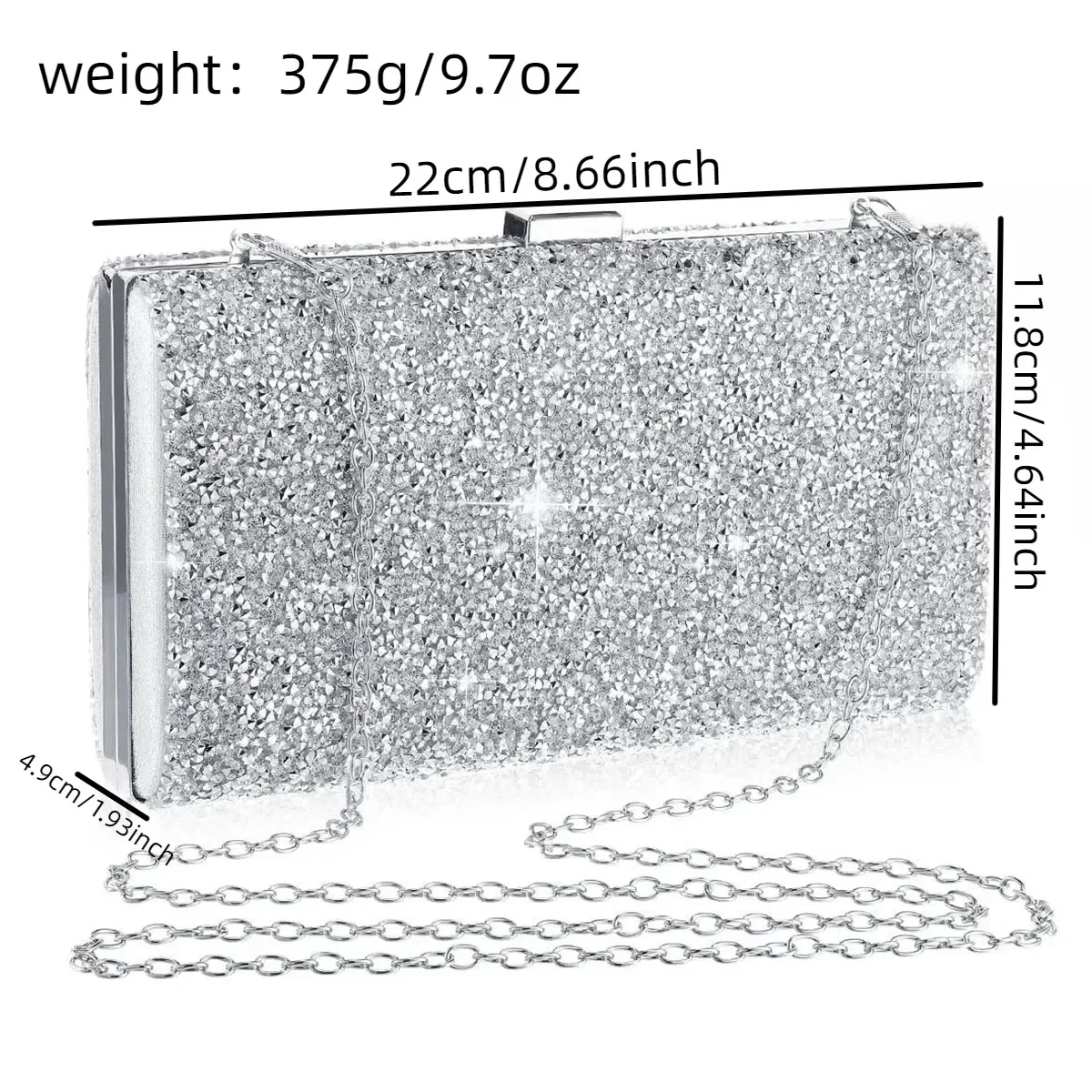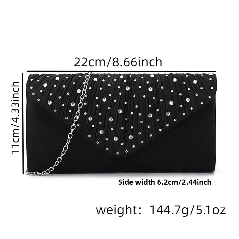 • Luxury Diamond-Encrusted Design : This evening bag boasts a luxurious diamond-encrusted design, making it a standout accessory for any formal event. Its elegant sparkle is sure to turn heads and enhance your overall look.