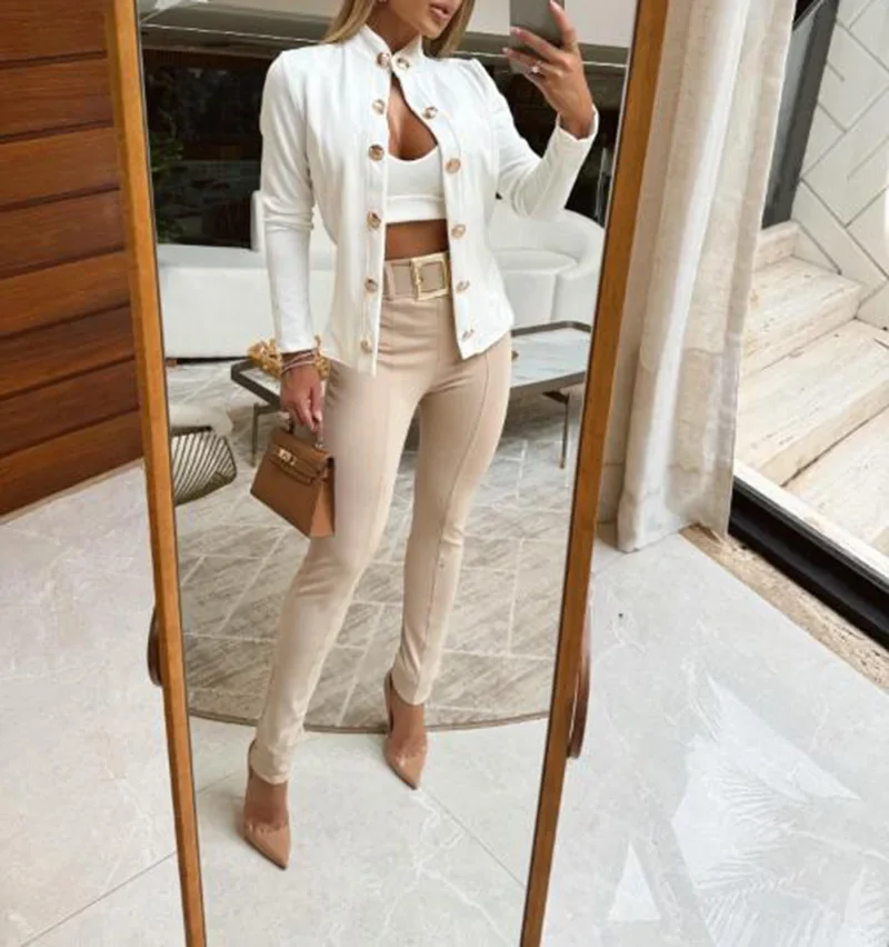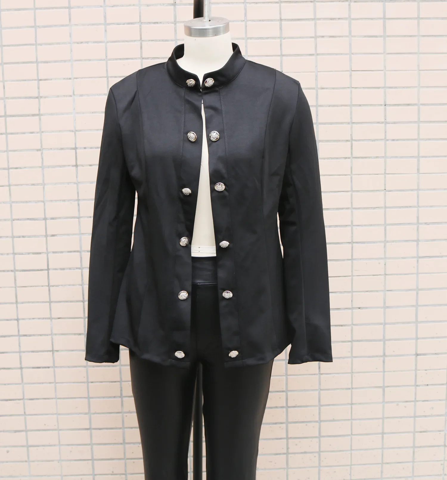 Fashionable Slim Fit Long Sleeve Stand Collar Double Buttoned Women’s Jacket New Style Cross-Border