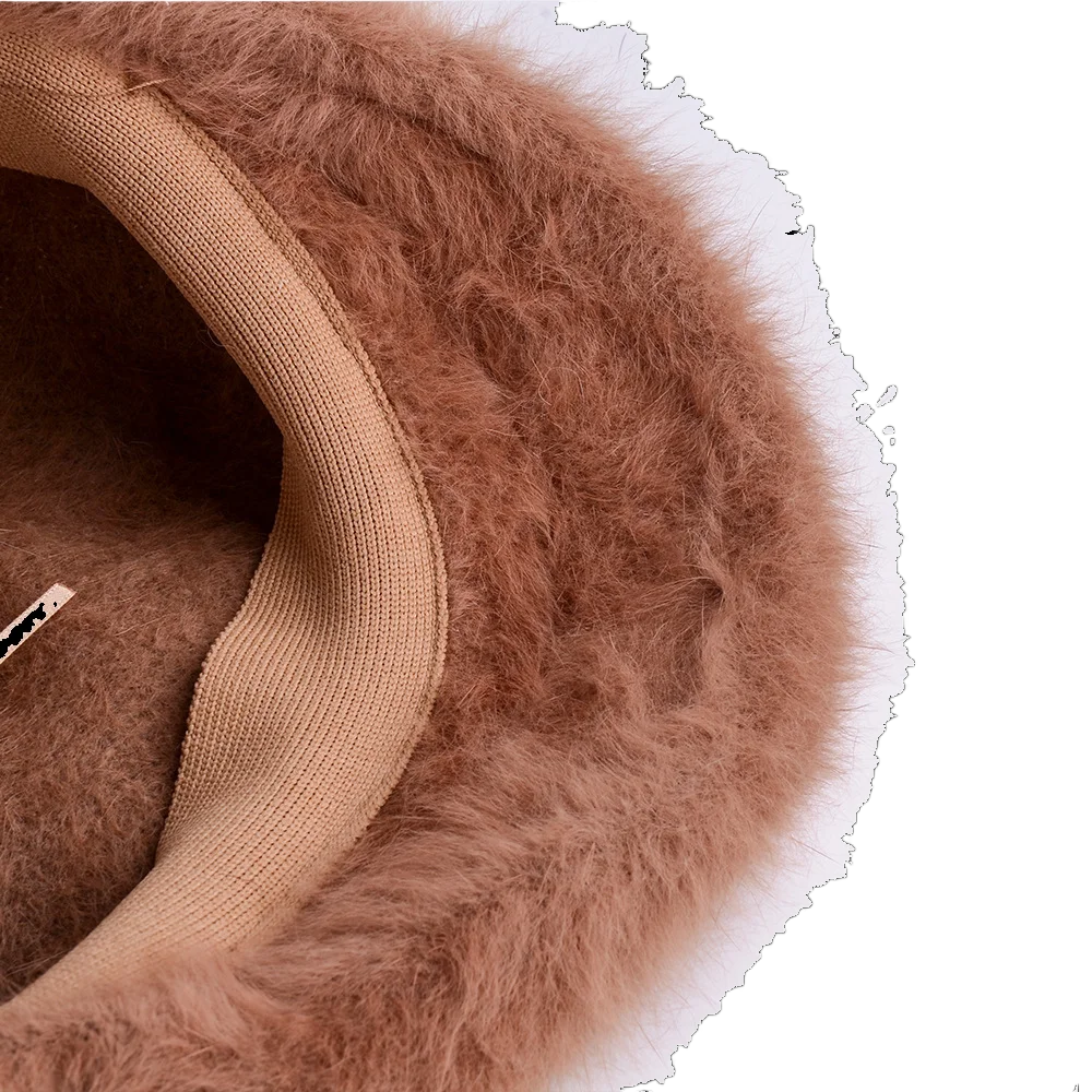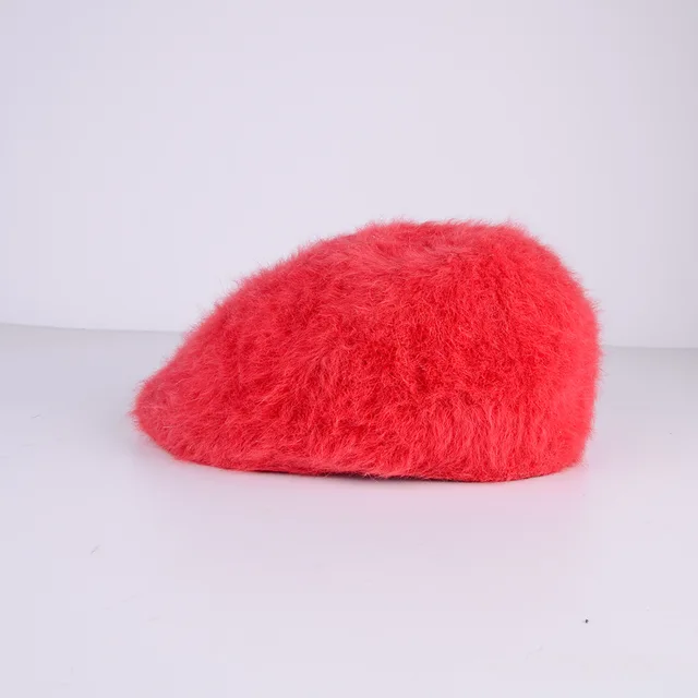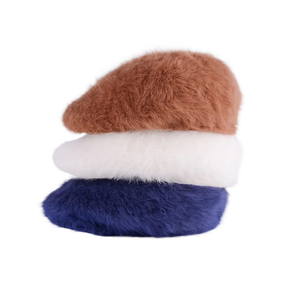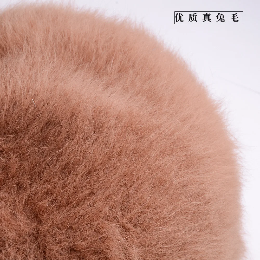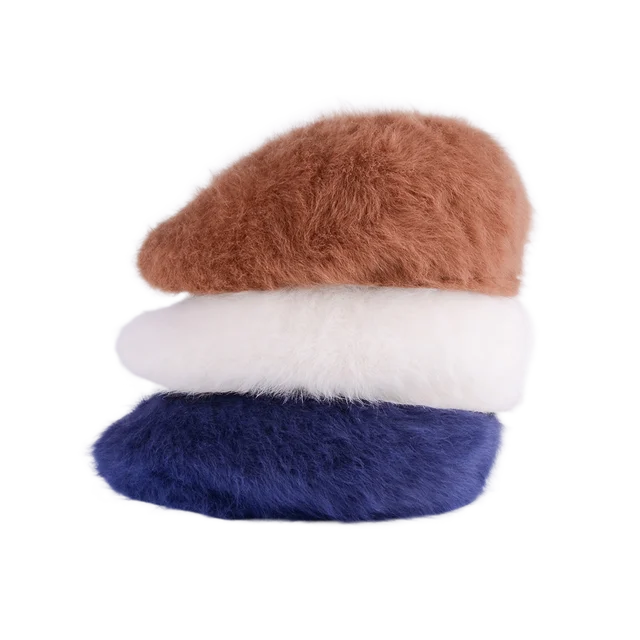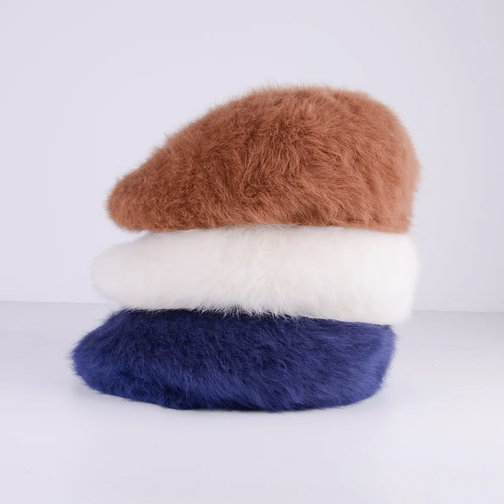 Crafted from soft angora rabbit fur and acrylic, this beret offers comfort and durability for daily wear.