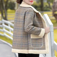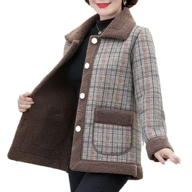 Fashionable Thickened Fleece Lined Loose Outerwear Warm Top for Middle-Aged And Elderly Women Autumn Winter New Arrival