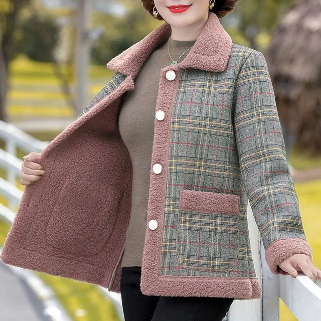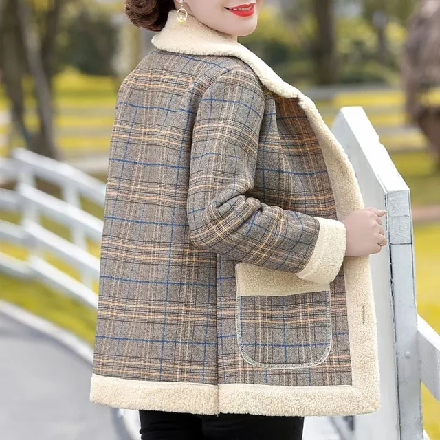 Fashionable Thickened Fleece Lined Loose Outerwear Warm Top for Middle-Aged And Elderly Women Autumn