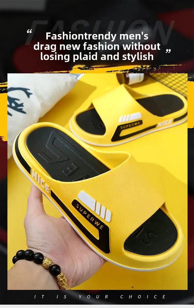 Fashionable Versatile Men’s Slippers Outer Wear Summer Anti-Slip Indoor Home Use One-Character