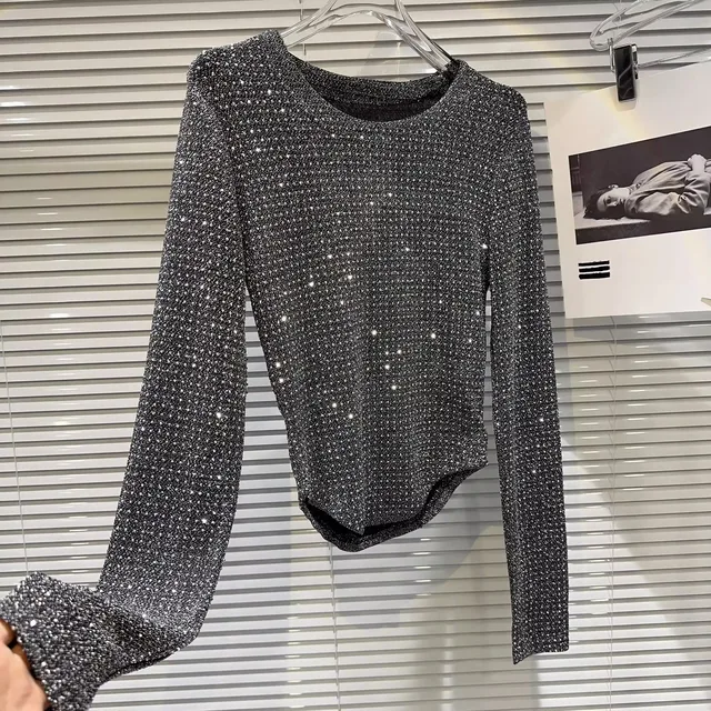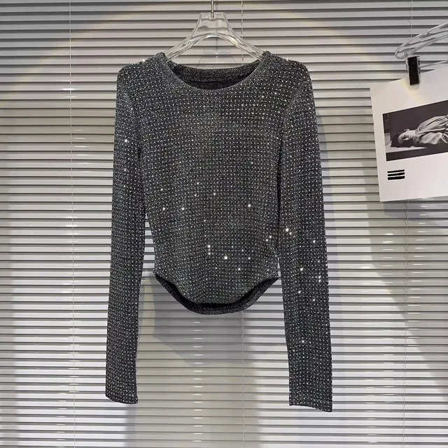 Fat people oversized wear 300 catties fashion rhinestone diamond bright silk curved edge women’s