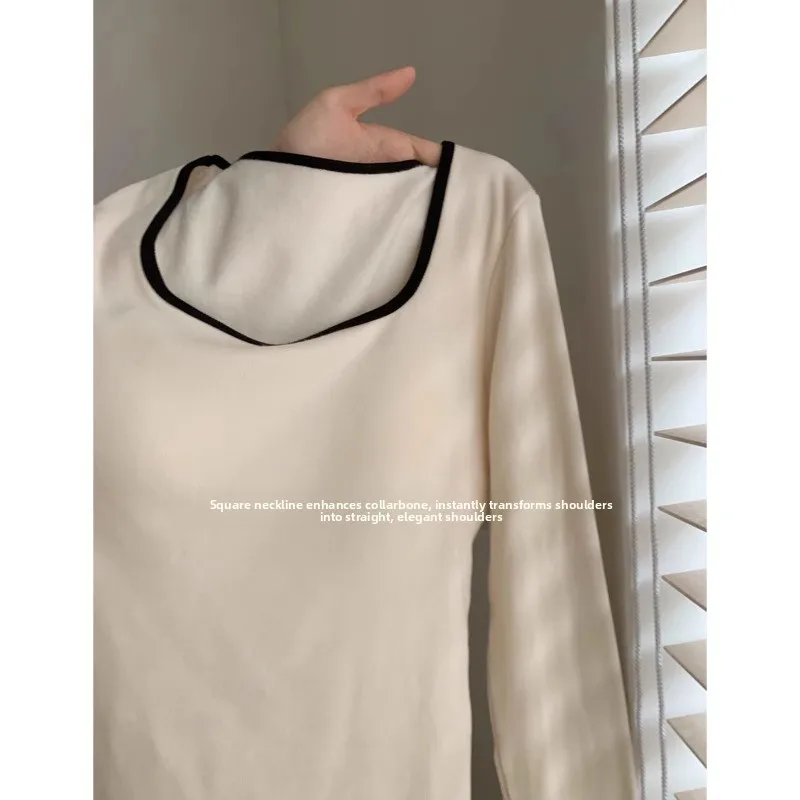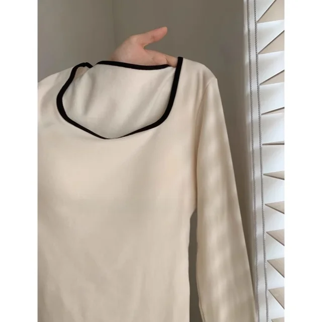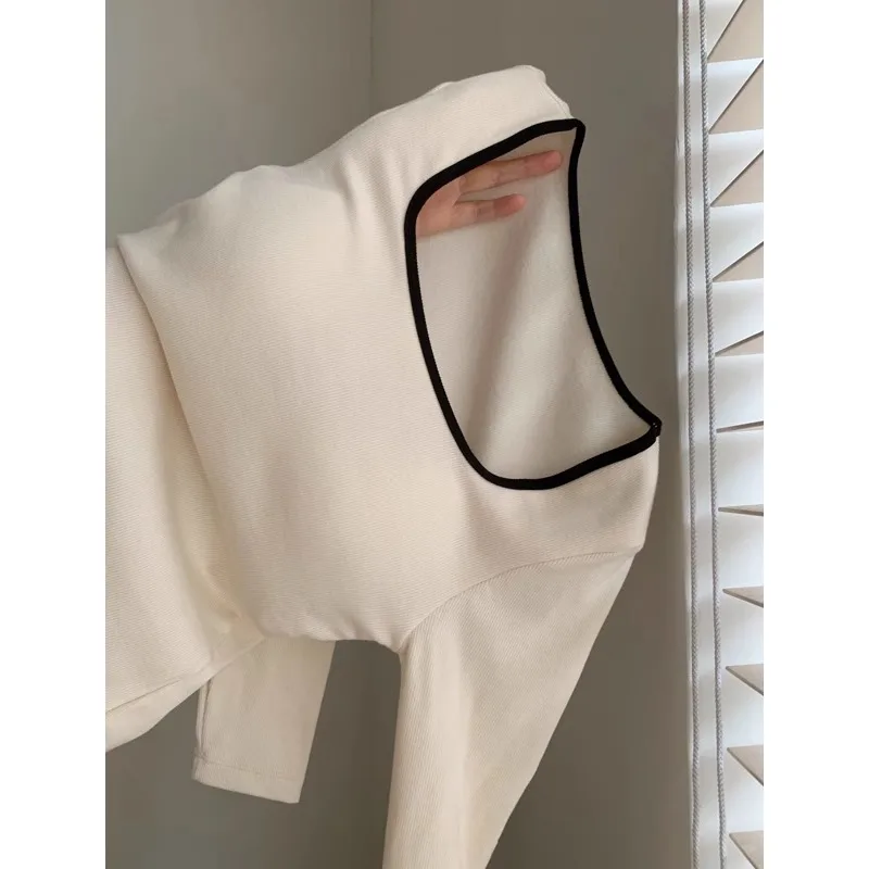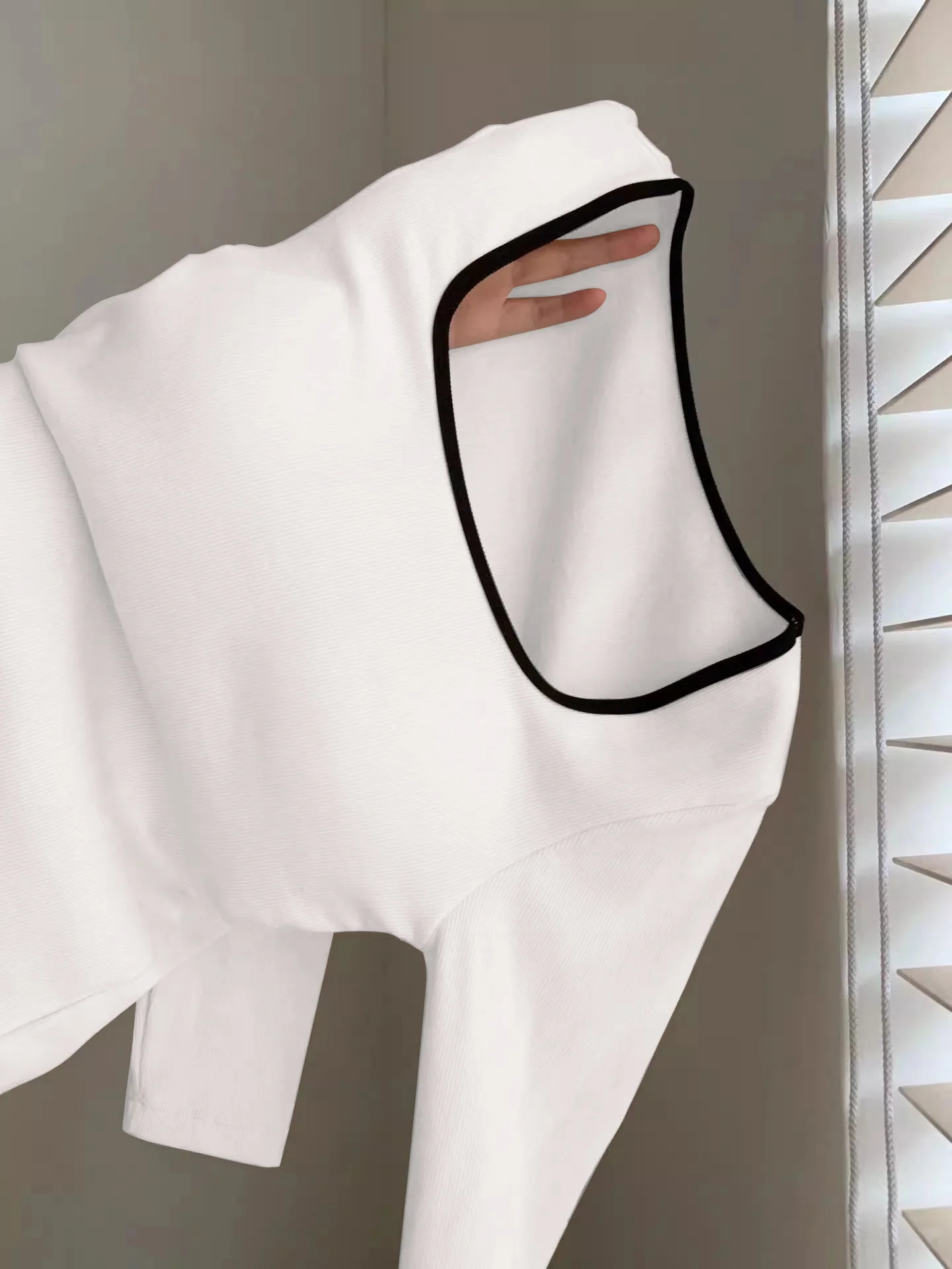 Featuring a trendy square collar and contrasting colors, this top adds a stylish touch to any outfit.
