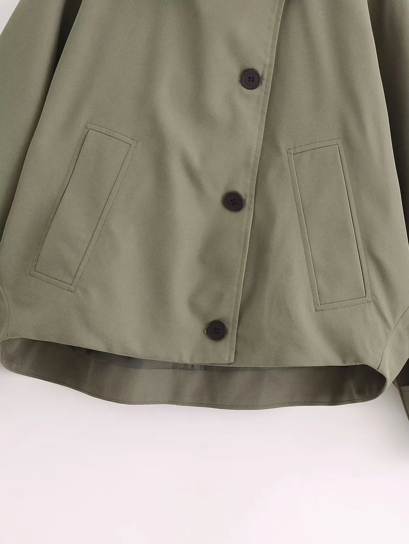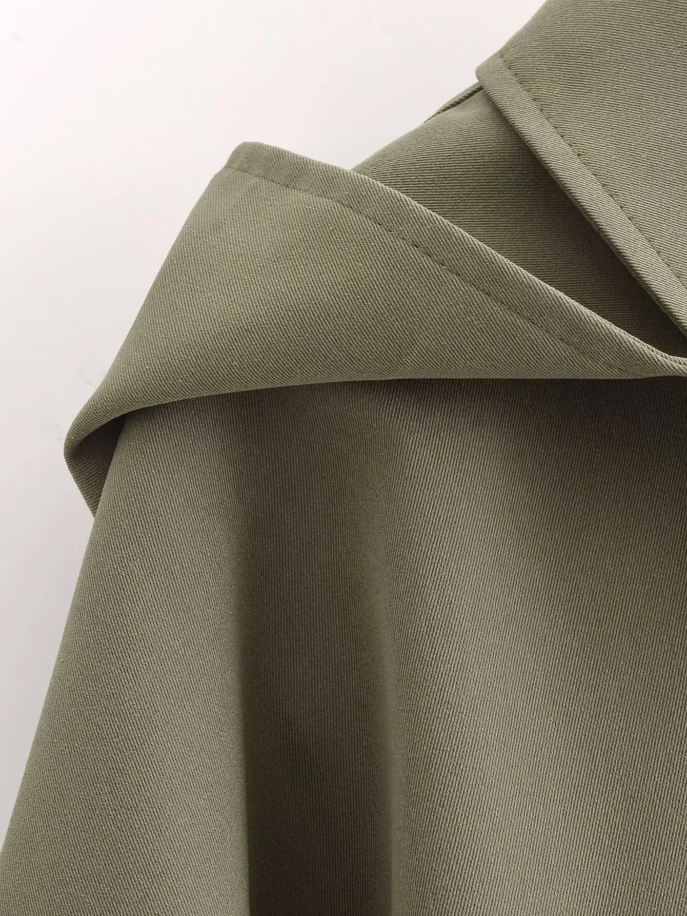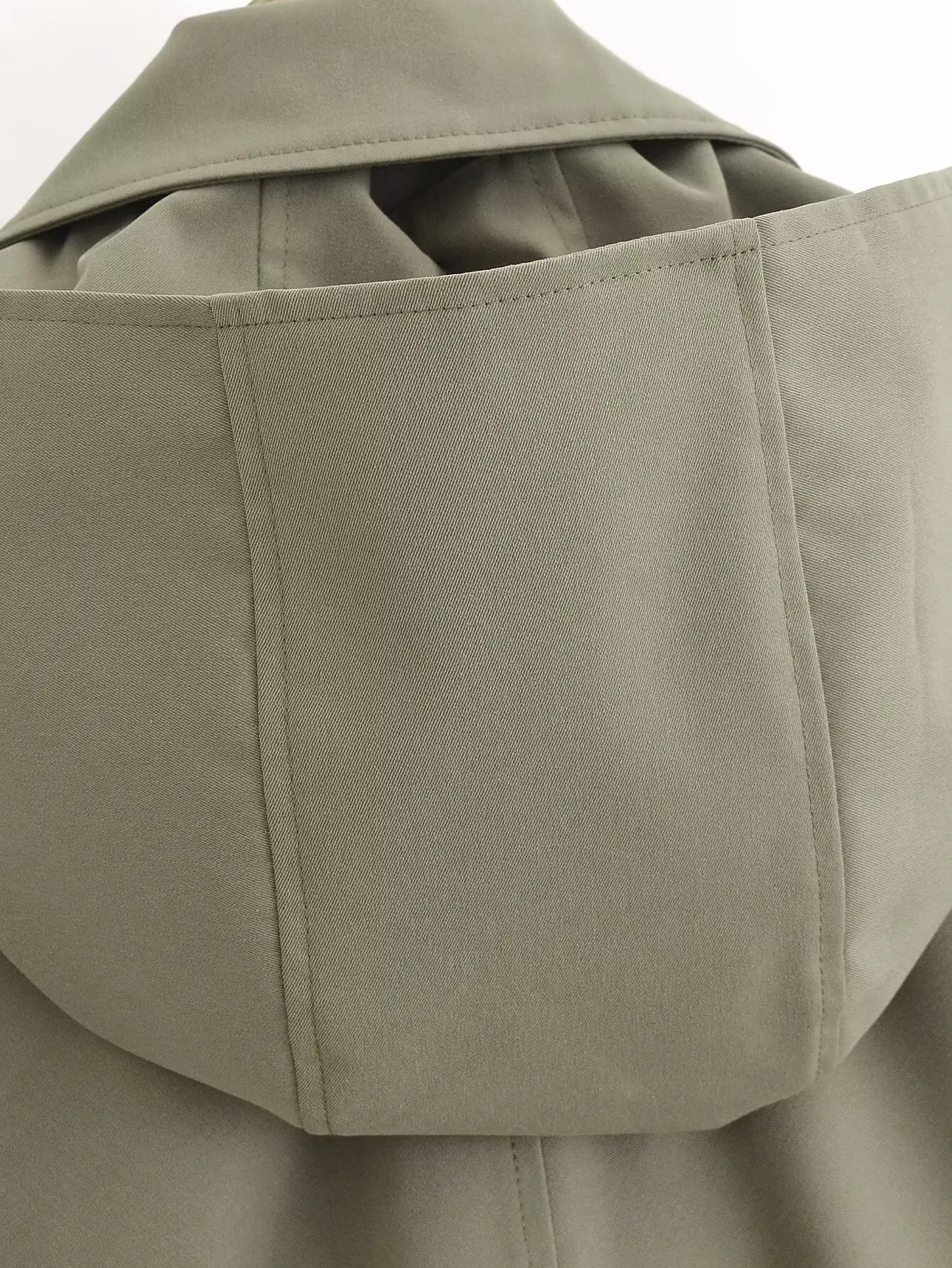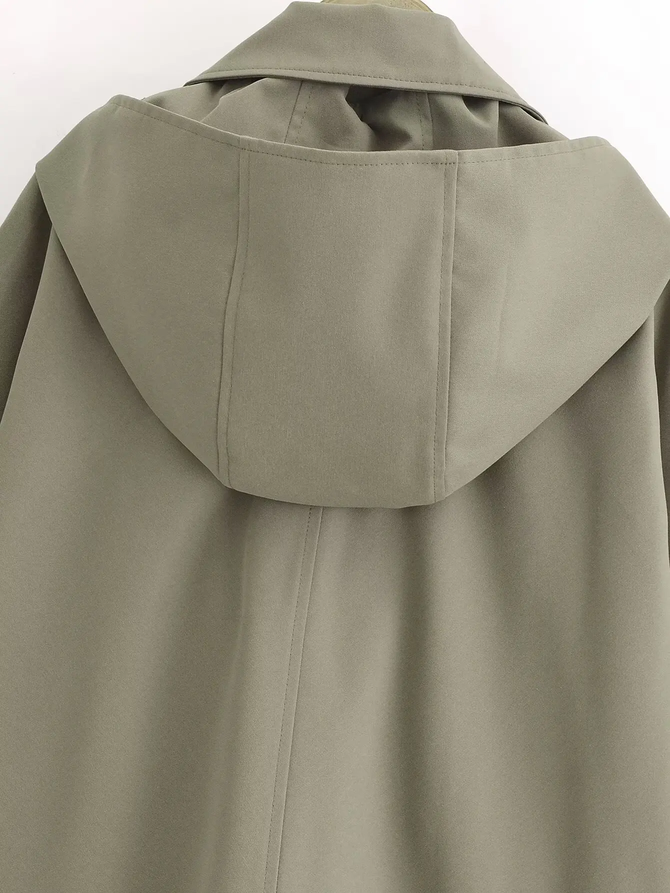 Female Cape Style Windbreaker Jackets Coat Hood Cropped Jacket Women Solid Trench Coat Autumn Long Sleeve