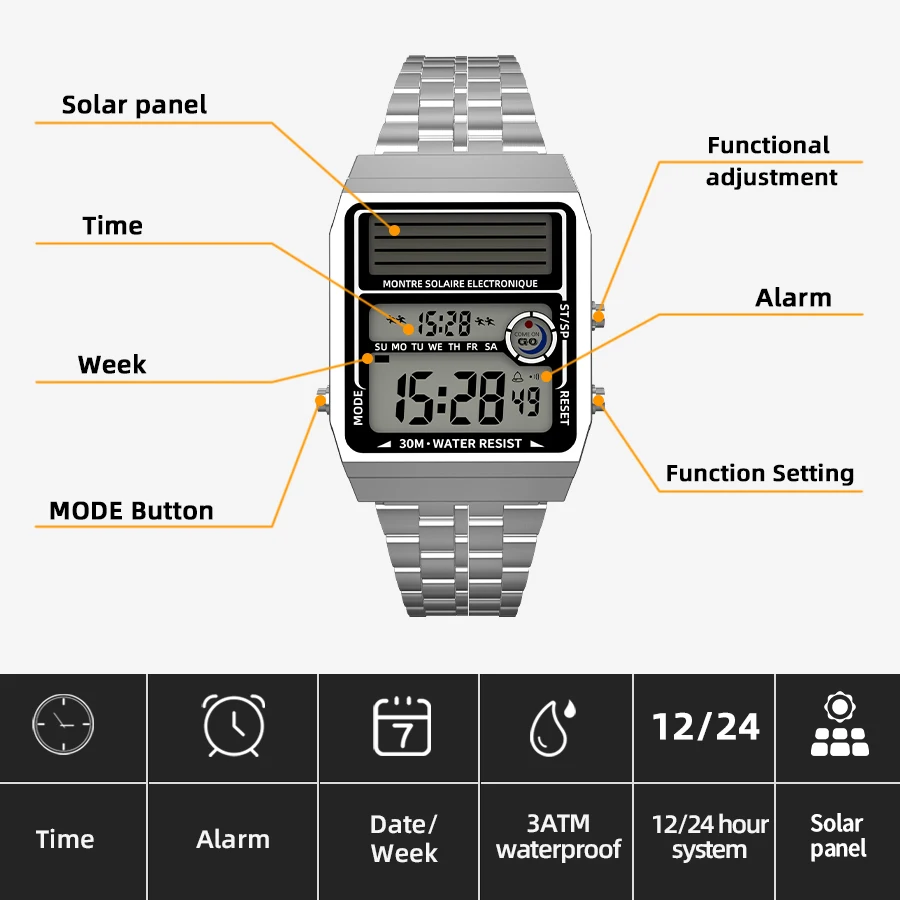 Experience precision timekeeping with the digital movement, ensuring accurate time display at all times.
