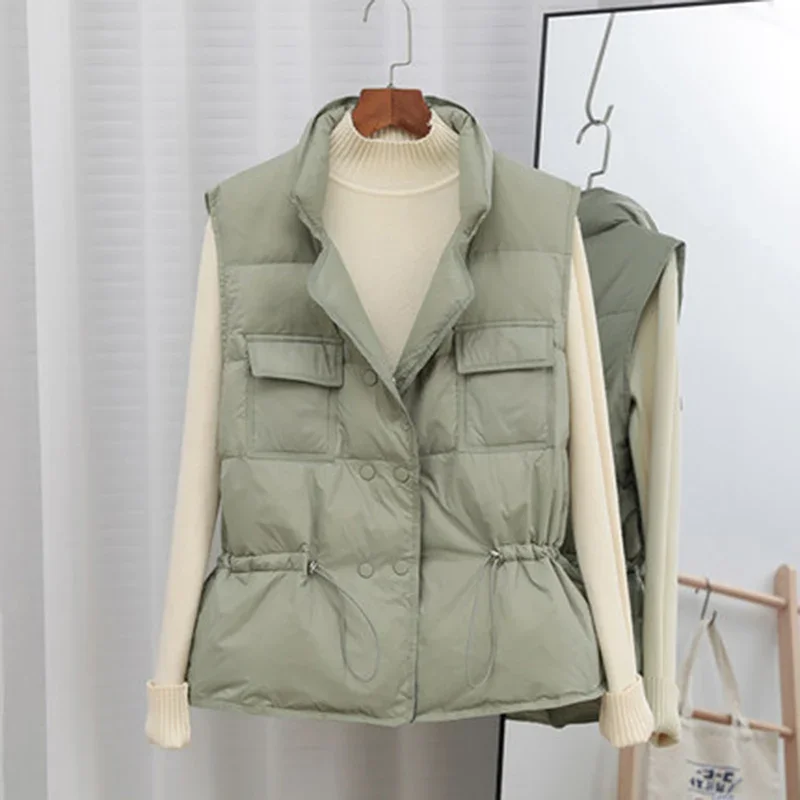 Female White Gilets Windbreaker Down Coat Winter Down Vest Women Short Sleeveless Vest Jacket Lightweight