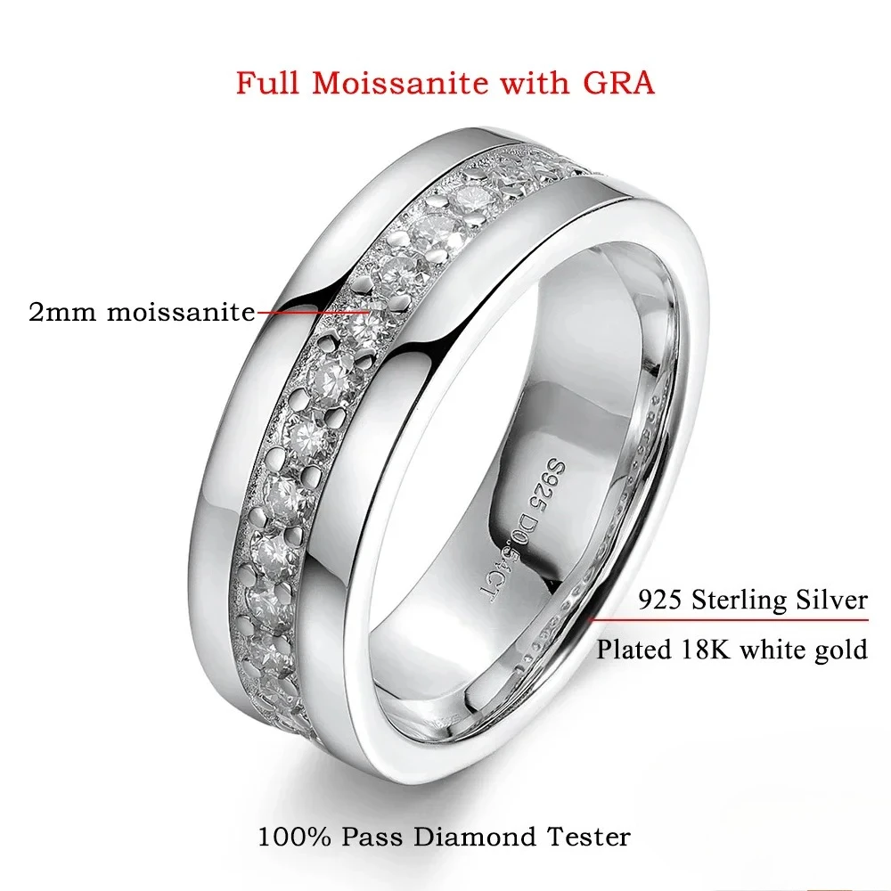 Full 2mm Moissanite Wedding Band for Man Women 925 Sterling Silver Plated 18k White Gold Rings Round Diamond Eternity Bands Jewelry