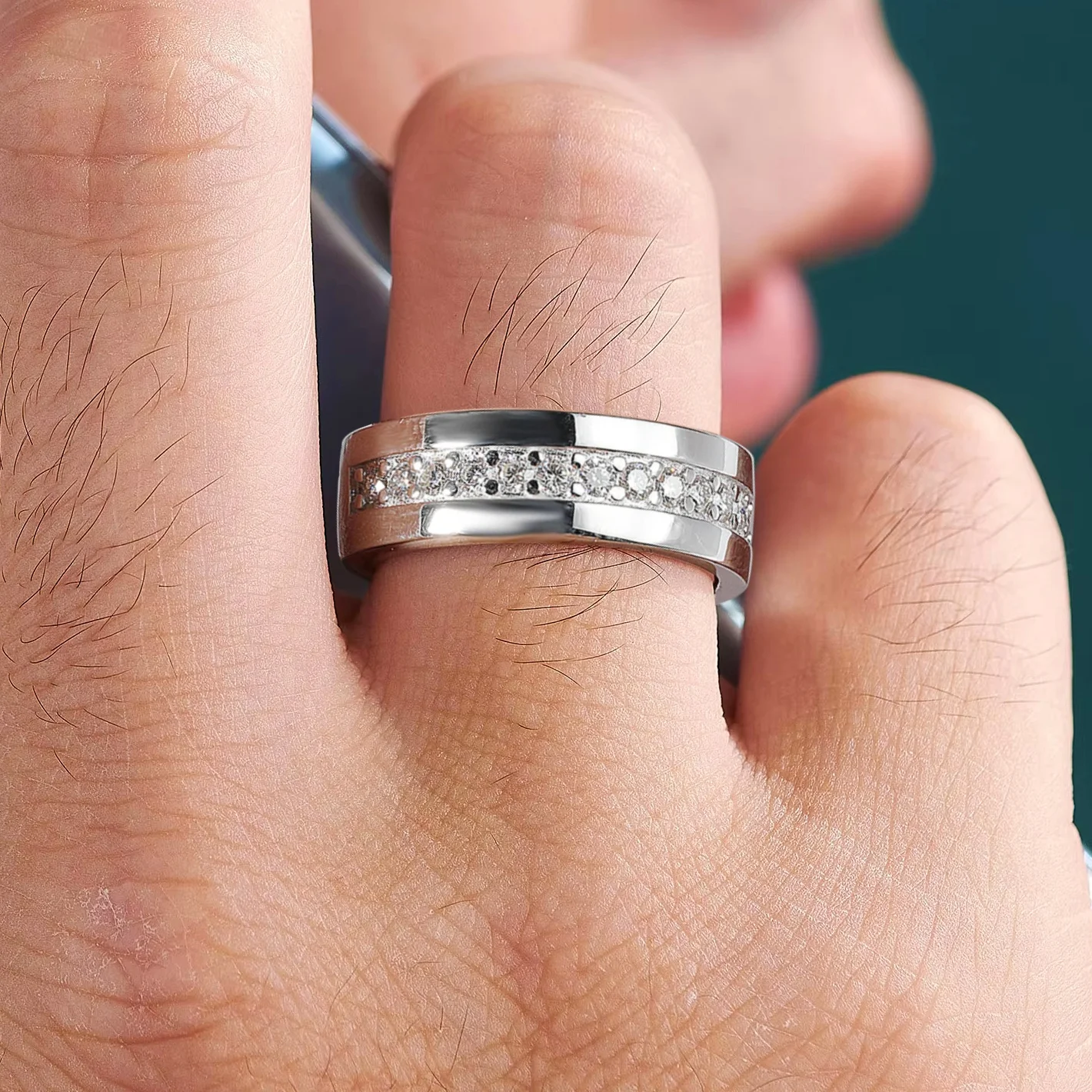 Be the first to review “FEOBUR 2mm Moissanite Wedding Band for Man 925 Sterling Silver Plated 18k White Gold Ring Round Diamond”