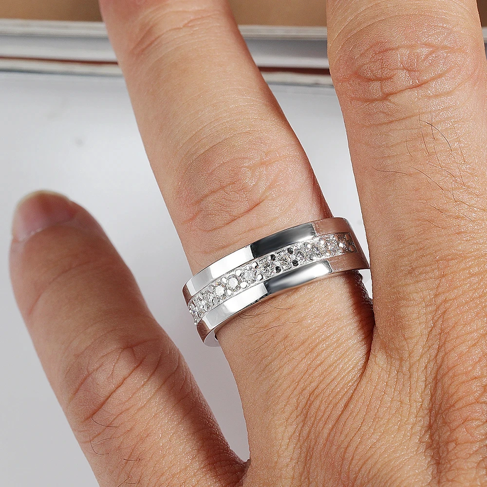 FEOBUR 2mm Moissanite Wedding Band for Man 925 Sterling Silver Plated 18k White Gold Ring Round Diamond Eternity Bands Jewelry
