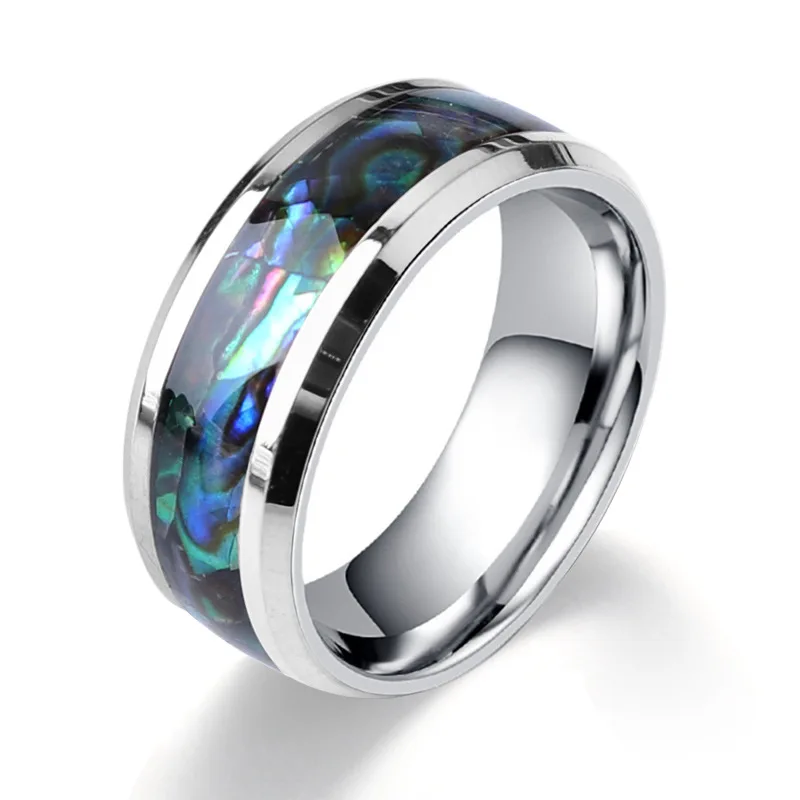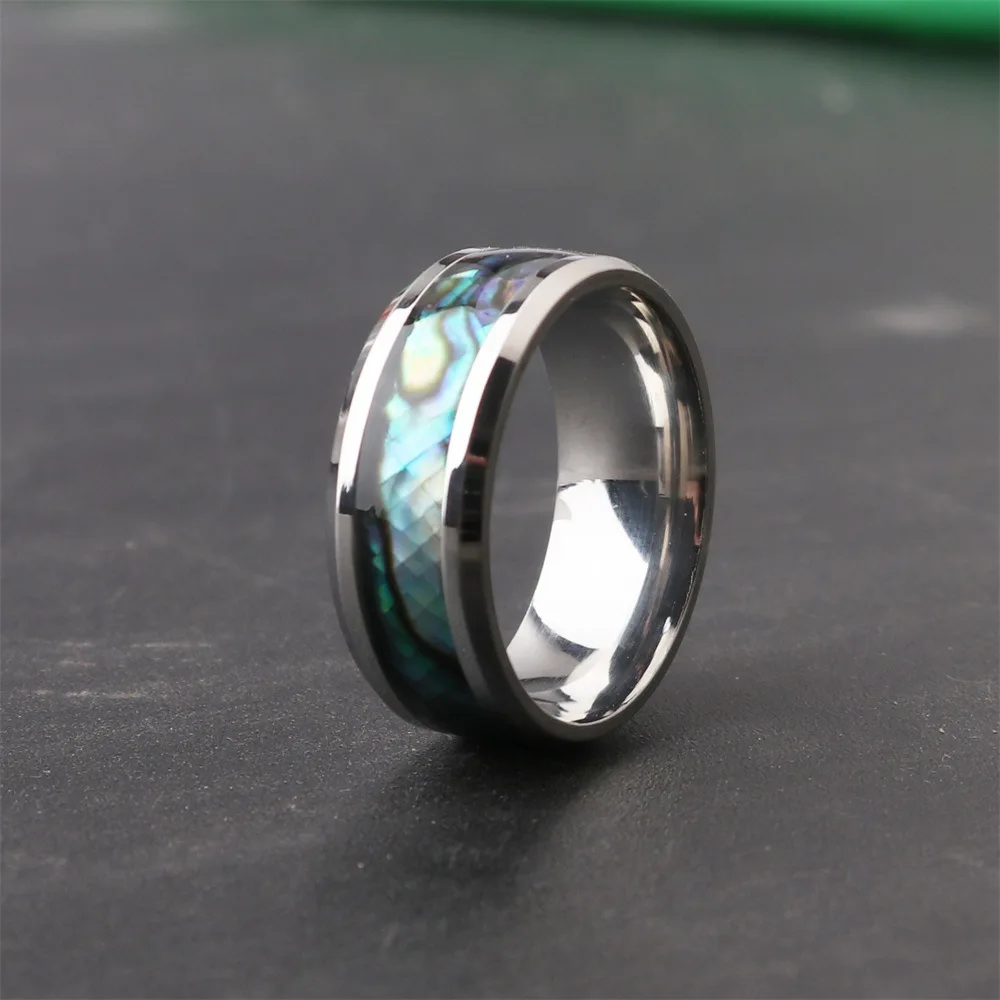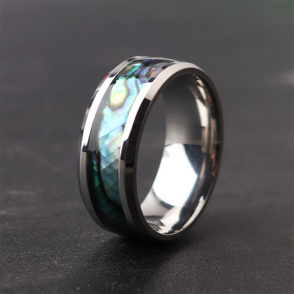 Fine Jewellery 8 Mm Inlaid Abalone Shell Smiles Steel Tungsten Carbide Ring Wedding Jewellery Valentine