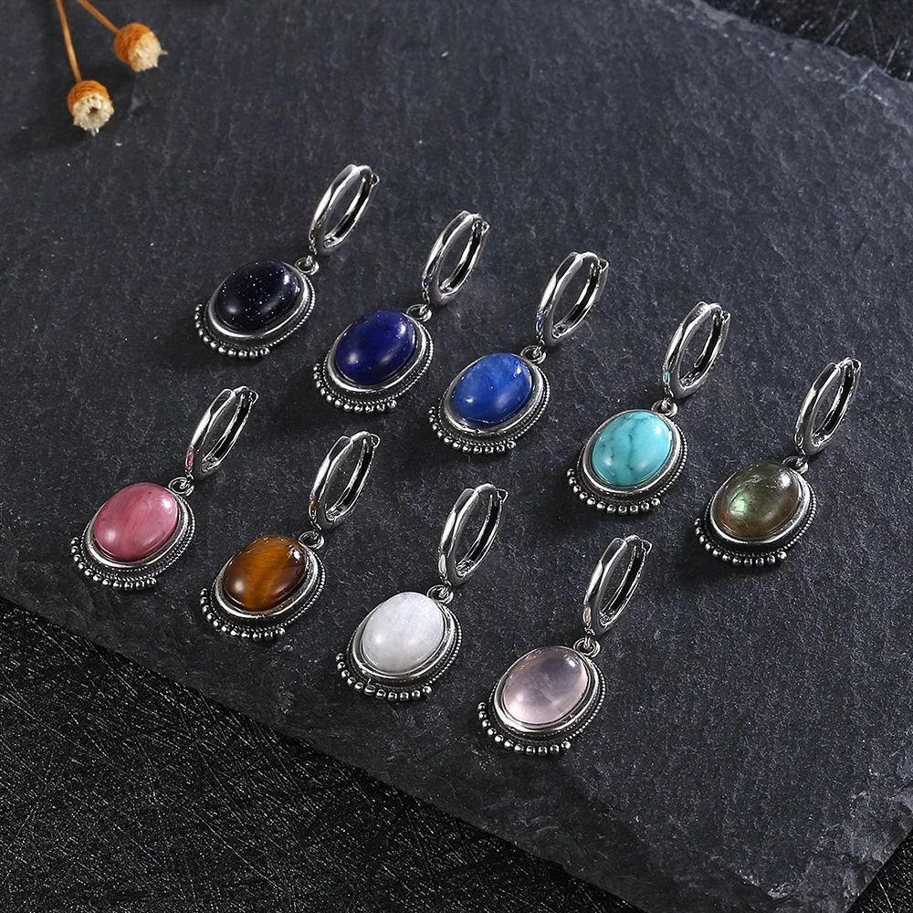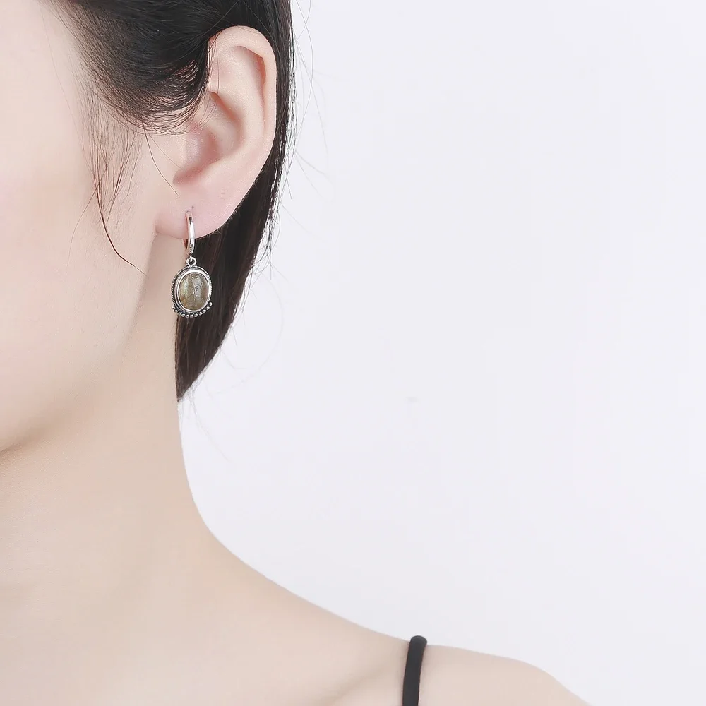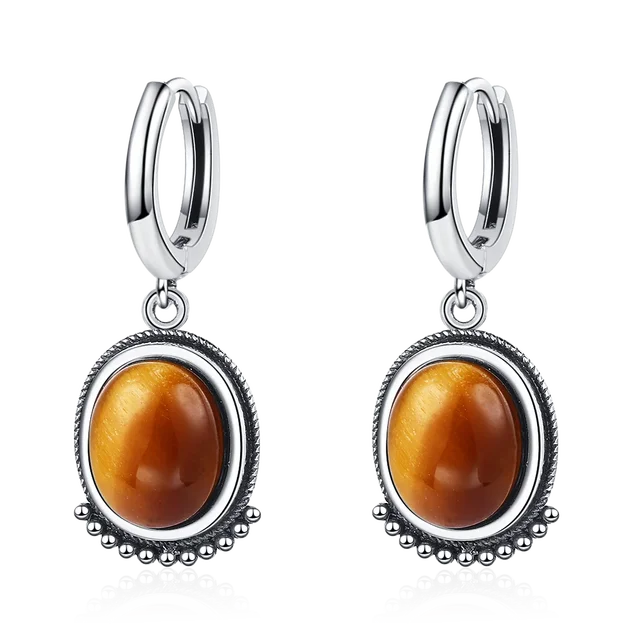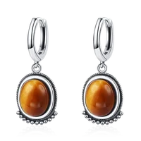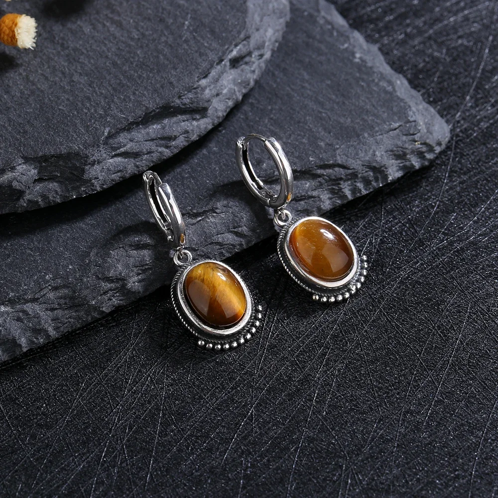 Fine 925 Sterling Silver Natural Tiger eye Earring for Women Vintage Elegant Labradorite Moonstone Jewelry Wedding Birthday Gift