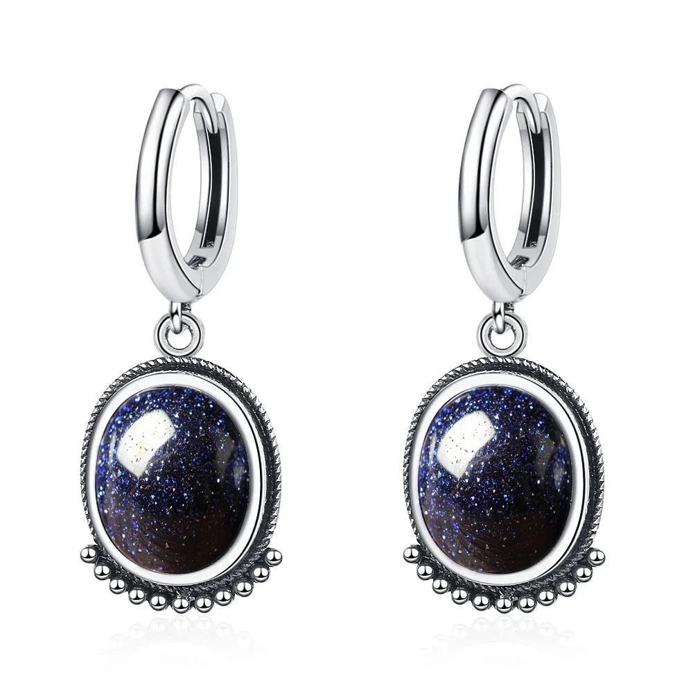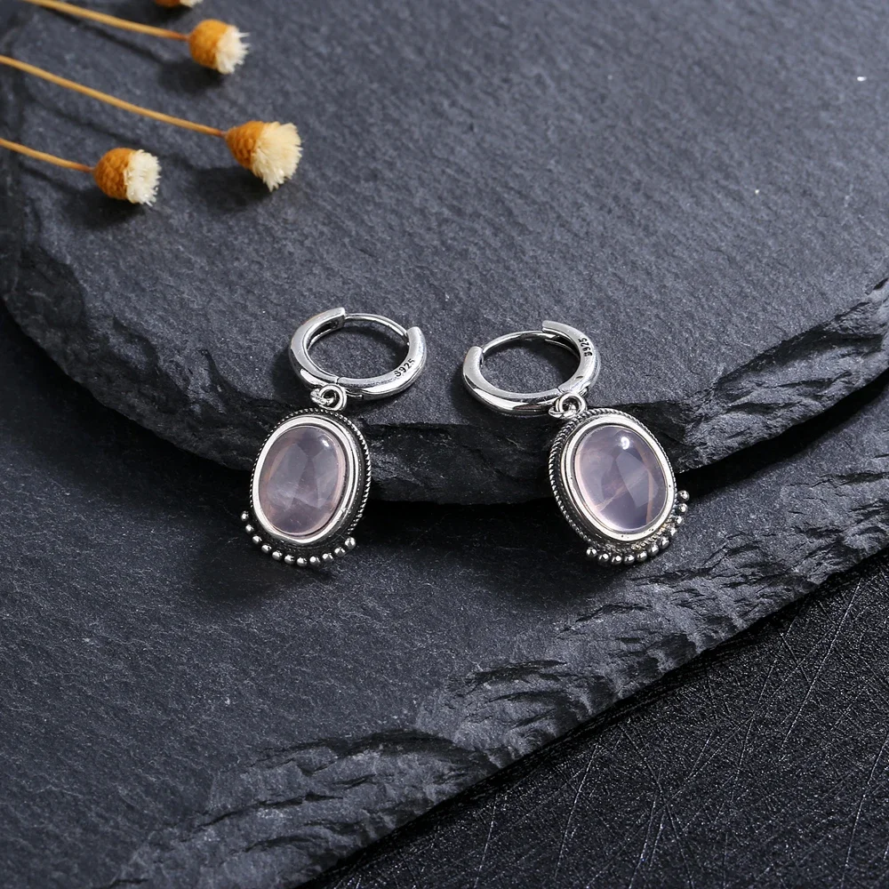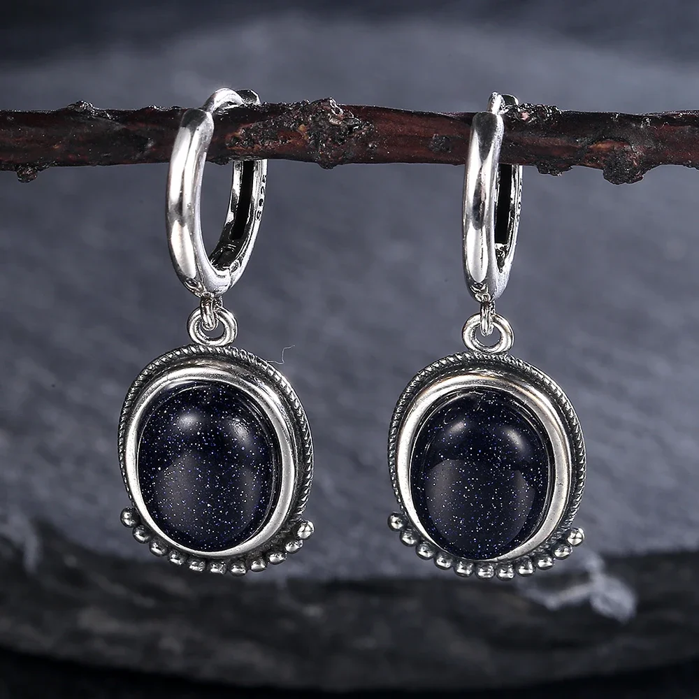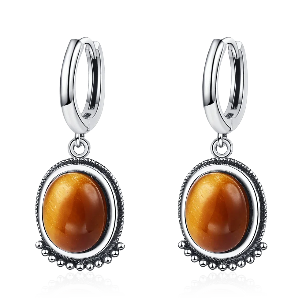 Fine 925 Sterling Silver Natural Tiger eye Earring for Women Vintage Elegant Labradorite Moonstone Jewelry Wedding Birthday Gift