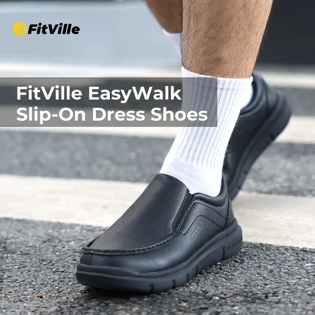 Fitville Men’s Shoes Wide Width Leather Slip-On Casual Shoes Lightweight For Swollen Feet with