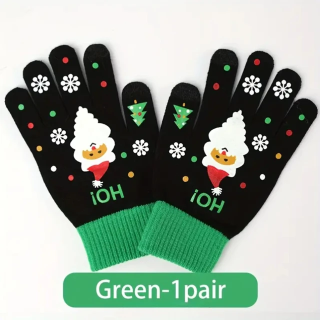 Christmas Reindeer Jacquard Knit Gloves with Plush Cuff Thick Warm Touchscreen Winter Soft Coldproof Warmth for Autumn Winter