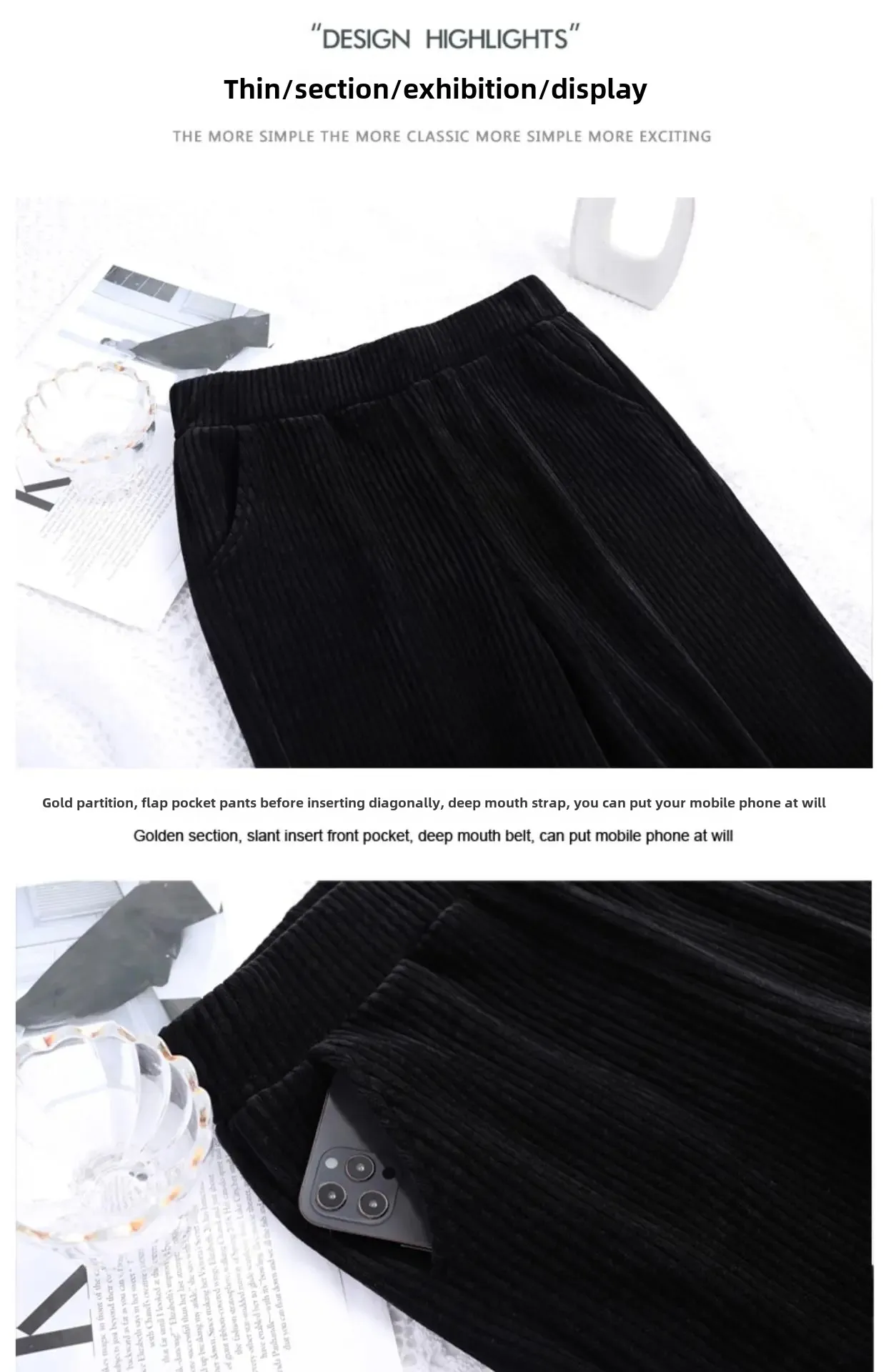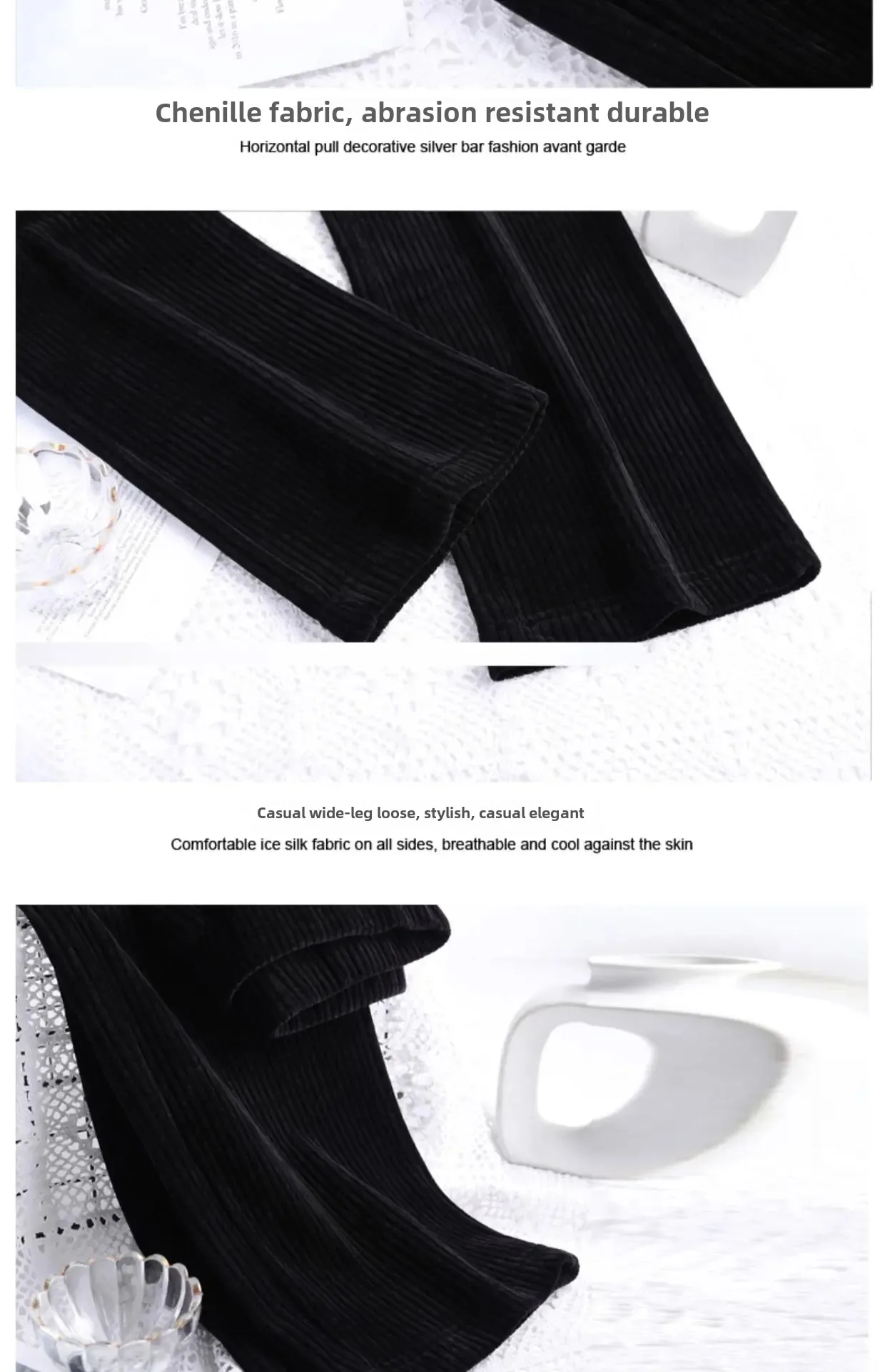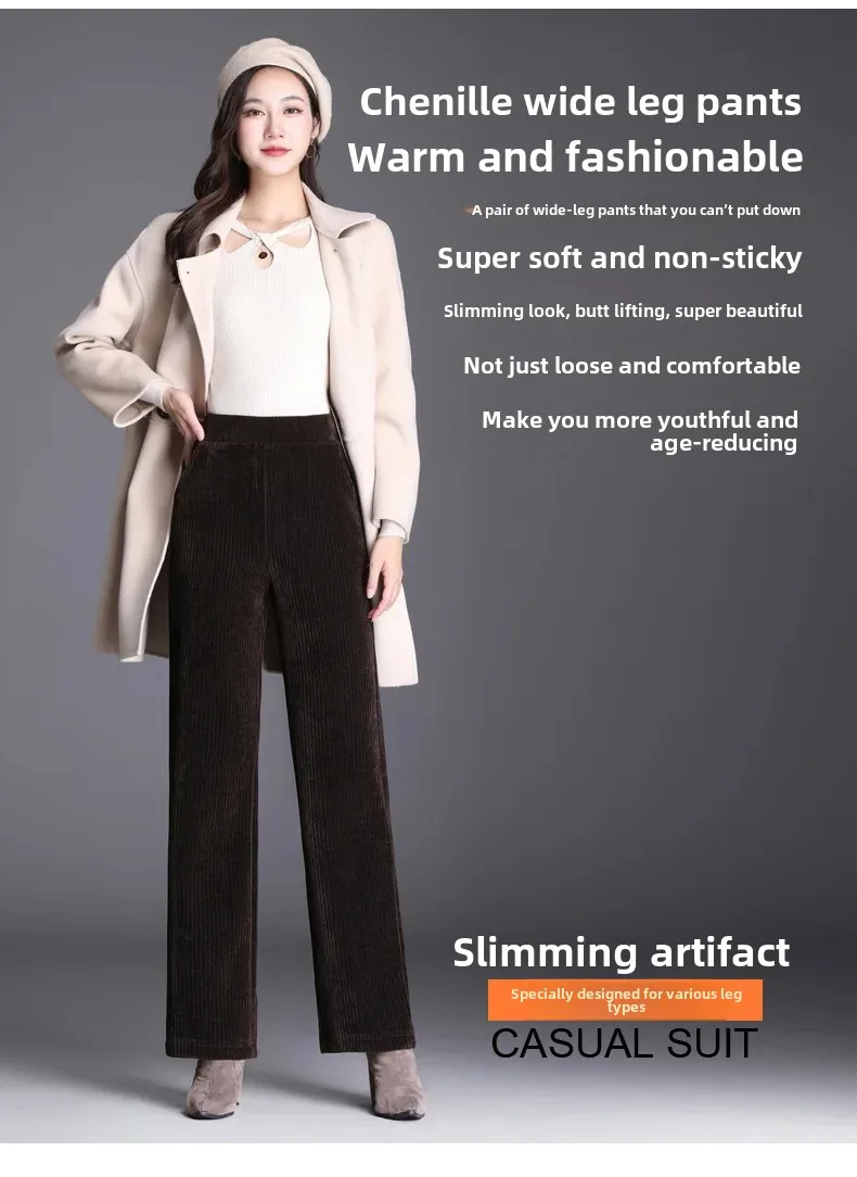 • Fleece-lined Chenille Material : Crafted with cozy fleece-lined chenille, these pants offer warmth and comfort during autumn and winter months.
