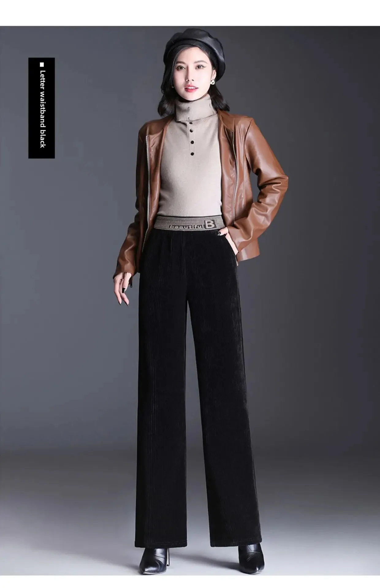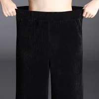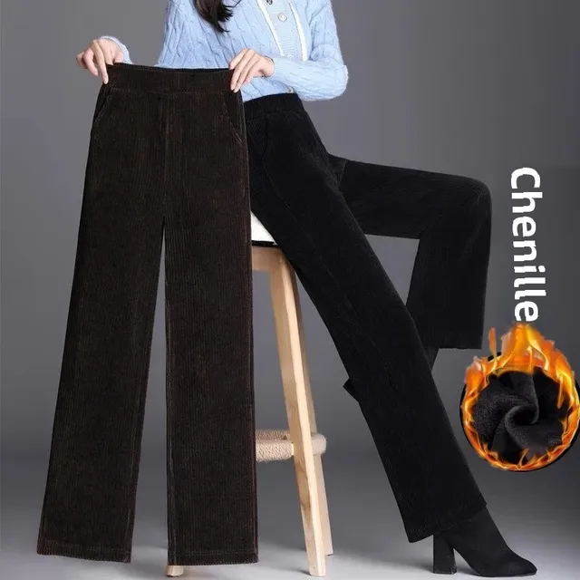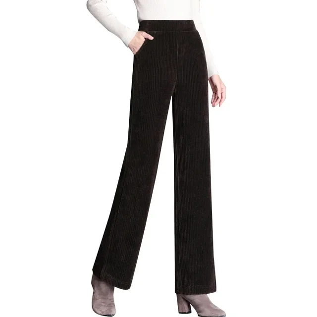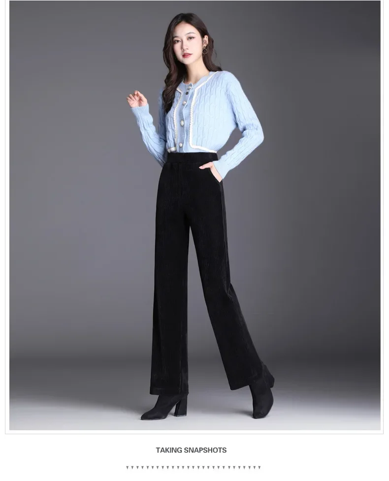 Fleece Lined/Waffle Knit Corduroy High Waist Wide Leg Pants Women’s Autumn Winter Loose Straight