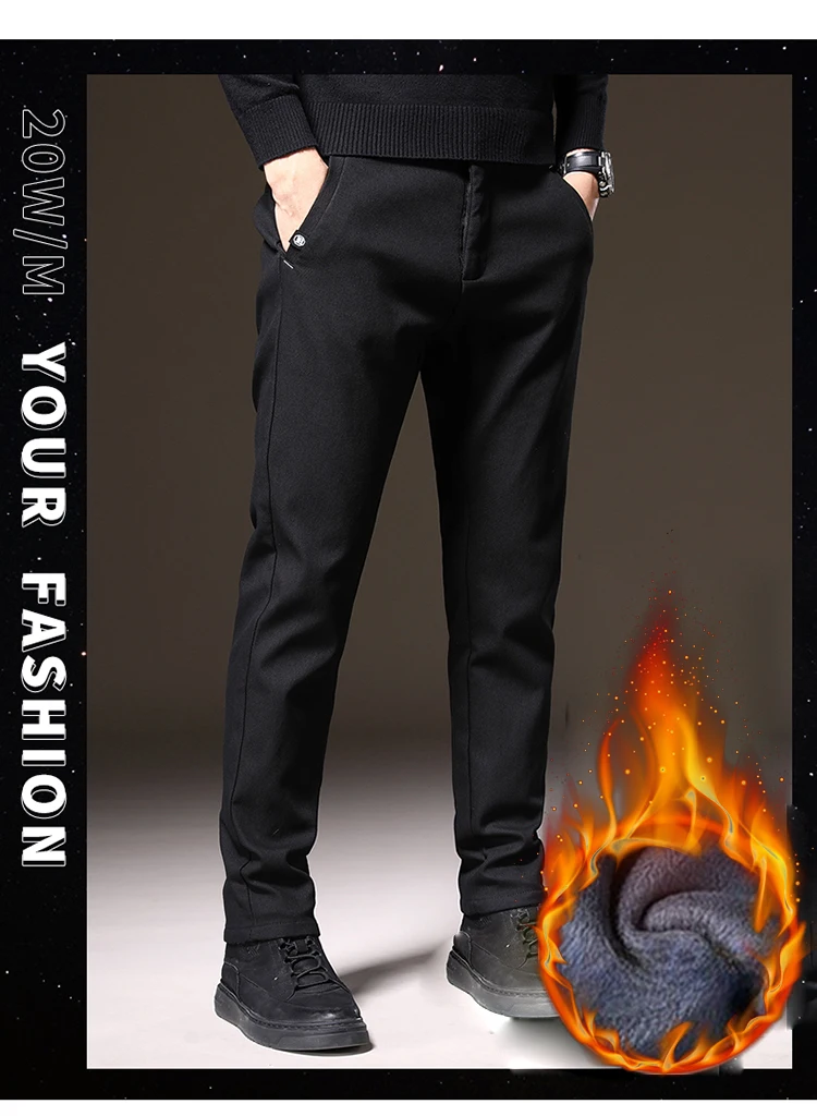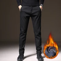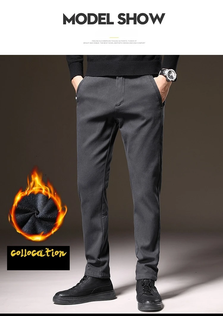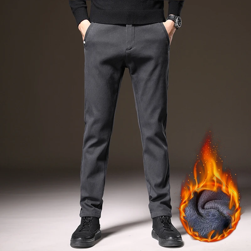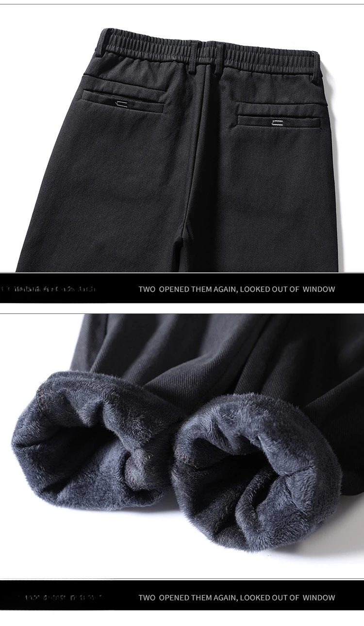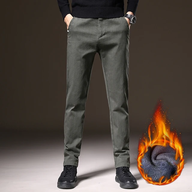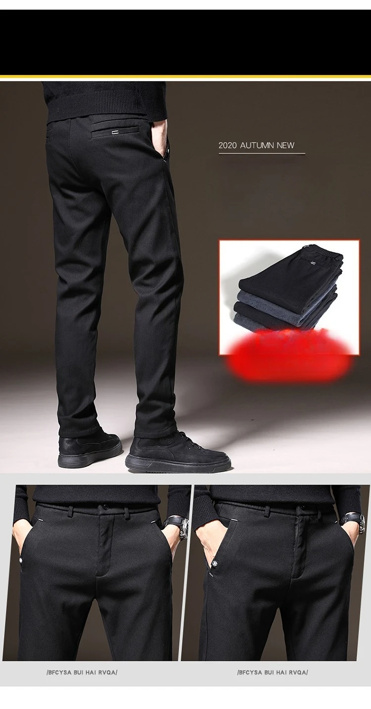 Fleece Pants Mens Soft Fit Straight Korean Fashion Male Casual Pants Business Simple Classic Outdoor Jogging Thick Warm Trousers