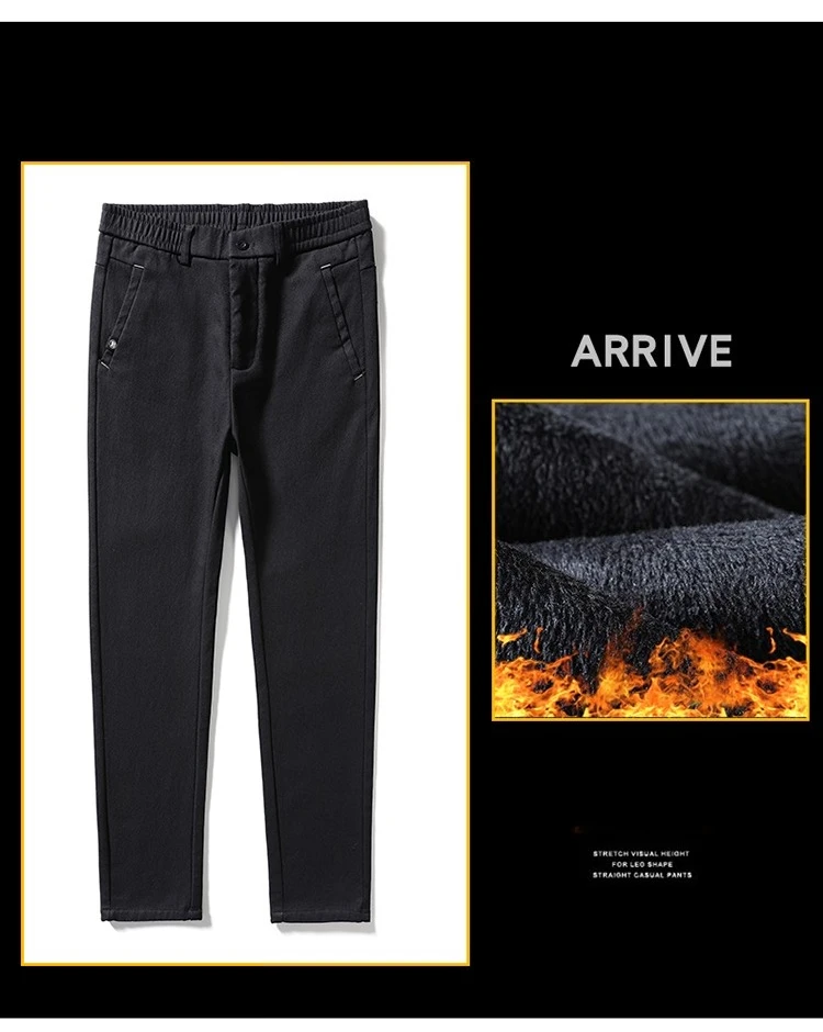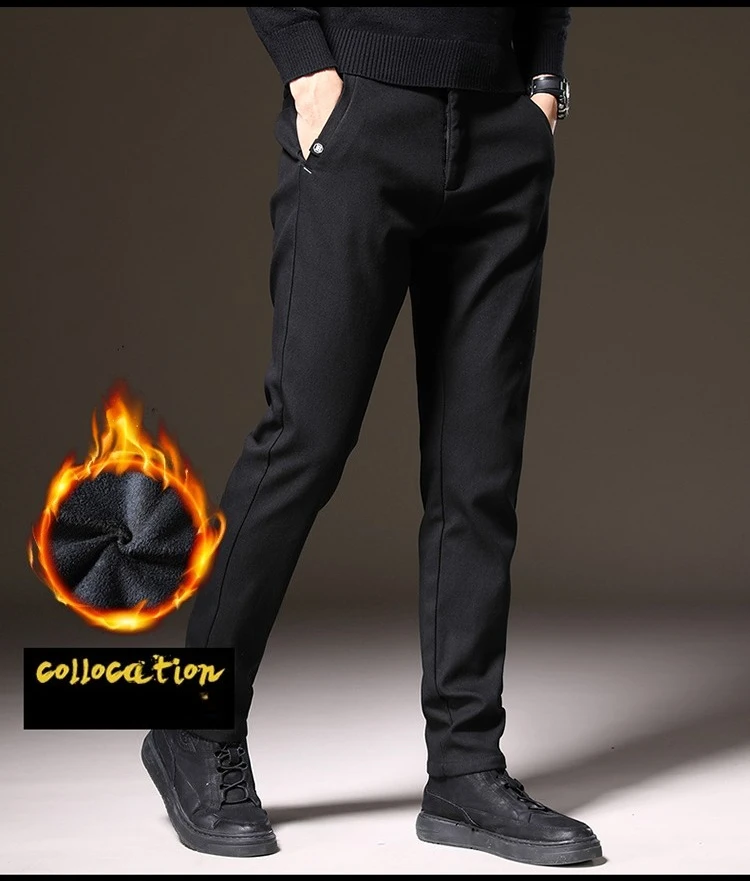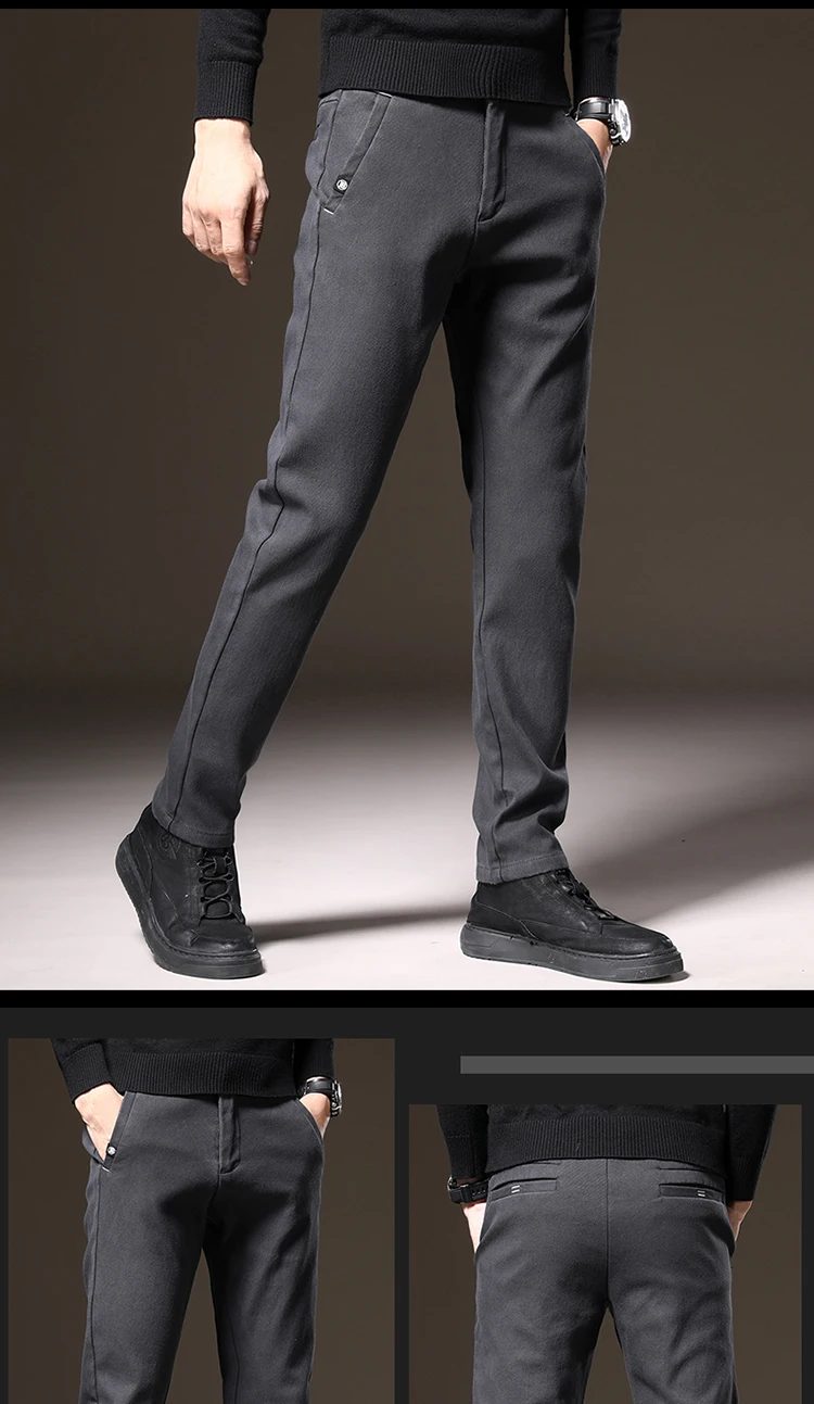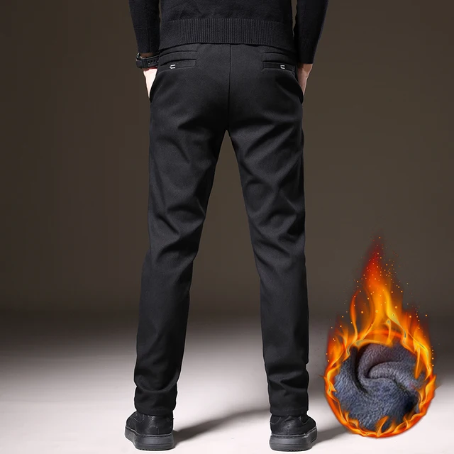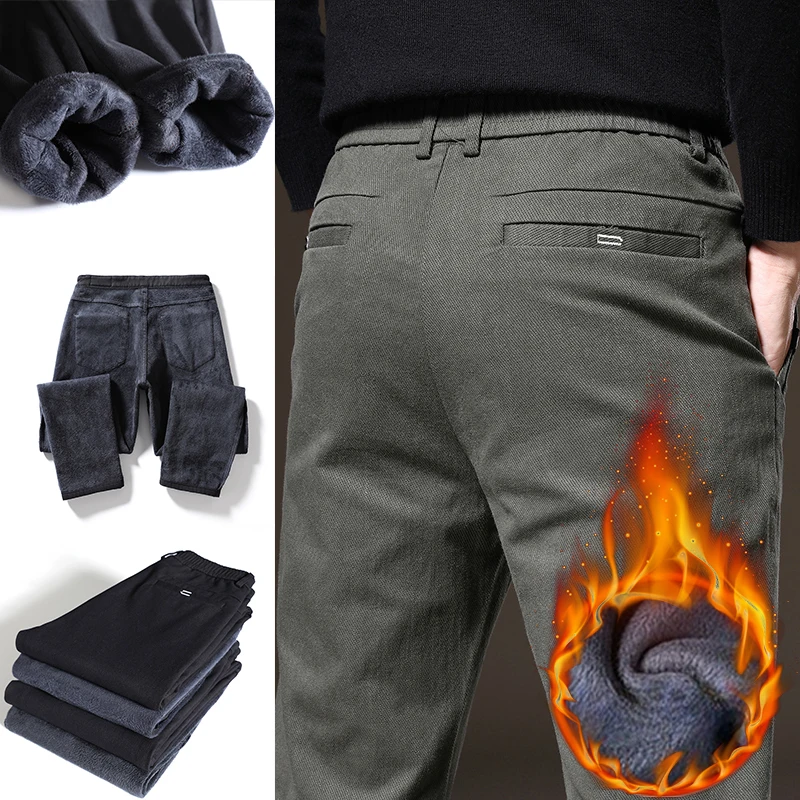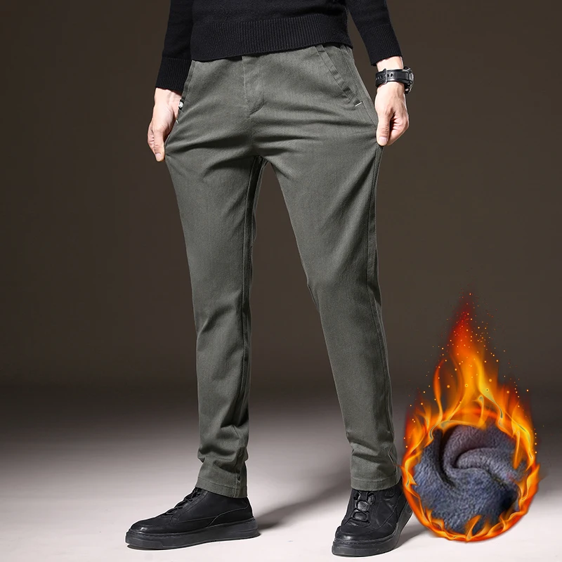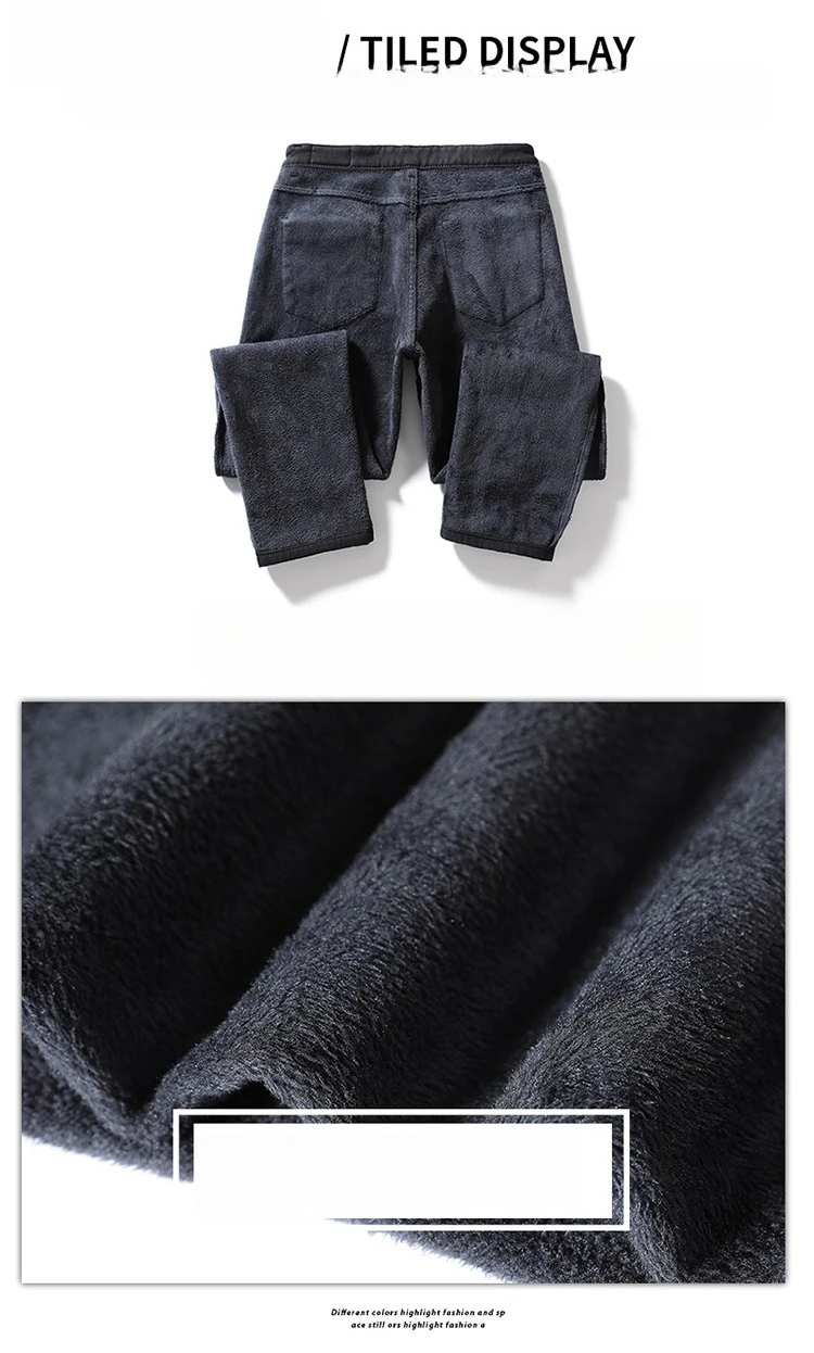 Fleece Pants Mens Soft Fit Straight Korean Fashion Male Casual Pants Business Simple Classic Outdoor Jogging Thick Warm Trousers