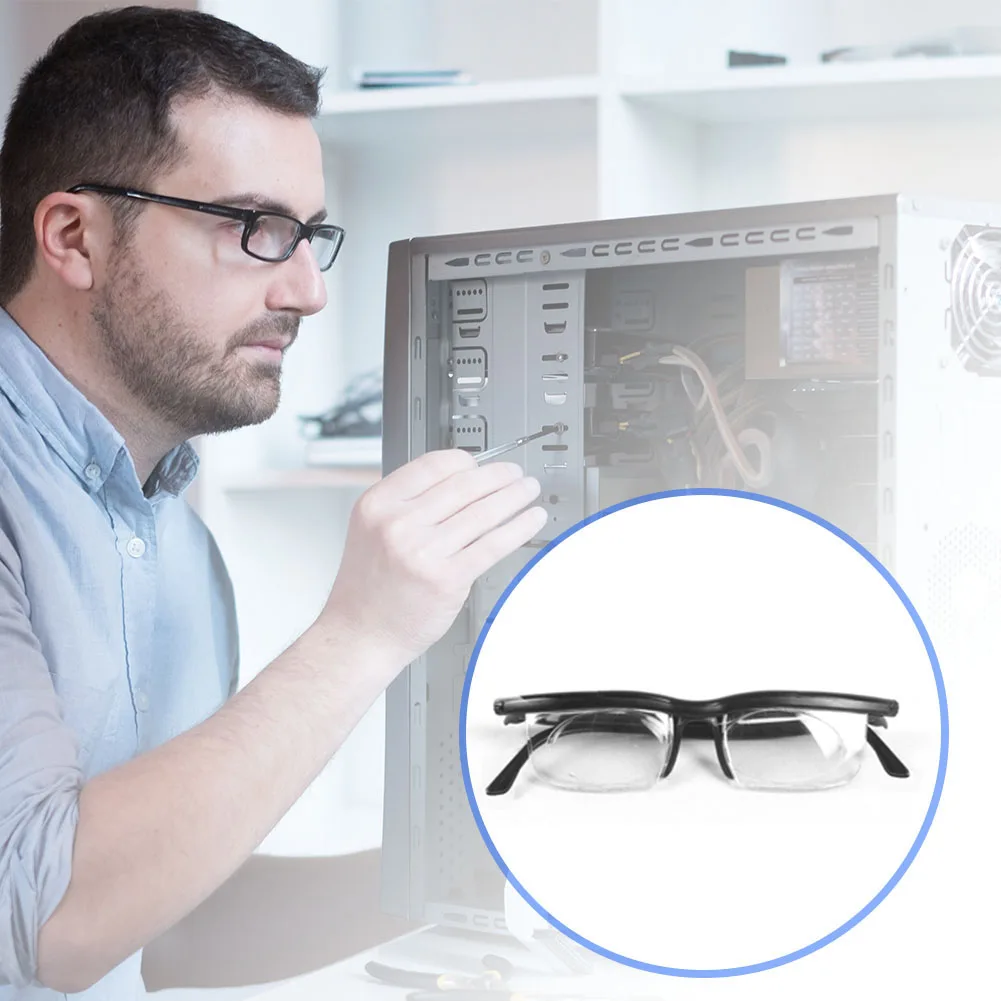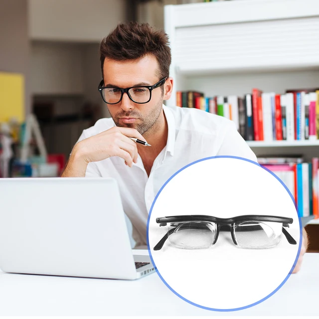 1. Adjustable Prescription and Magnification: The focus adjustable glasses features a rotating dial that allows you to customize the prescription and magnification according to your exact needs. Experience the convenience of clear vision with this user-friendly eyeglasses. Specification: Material: AP + PC