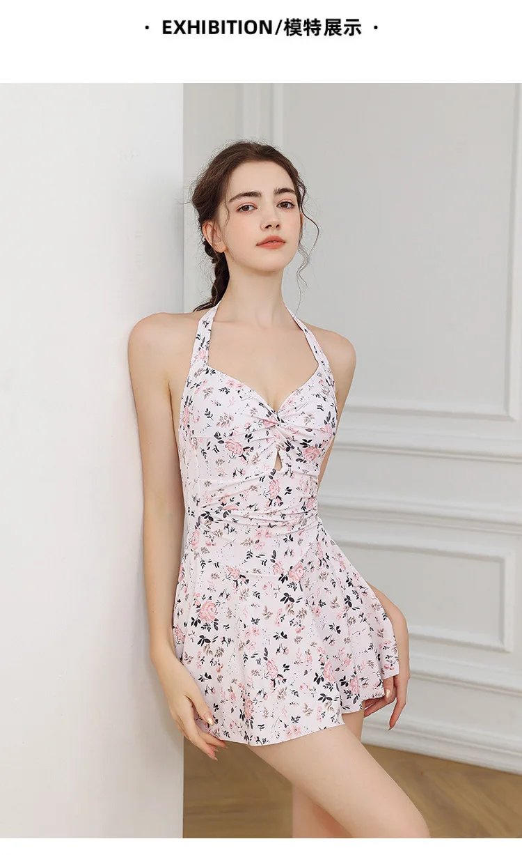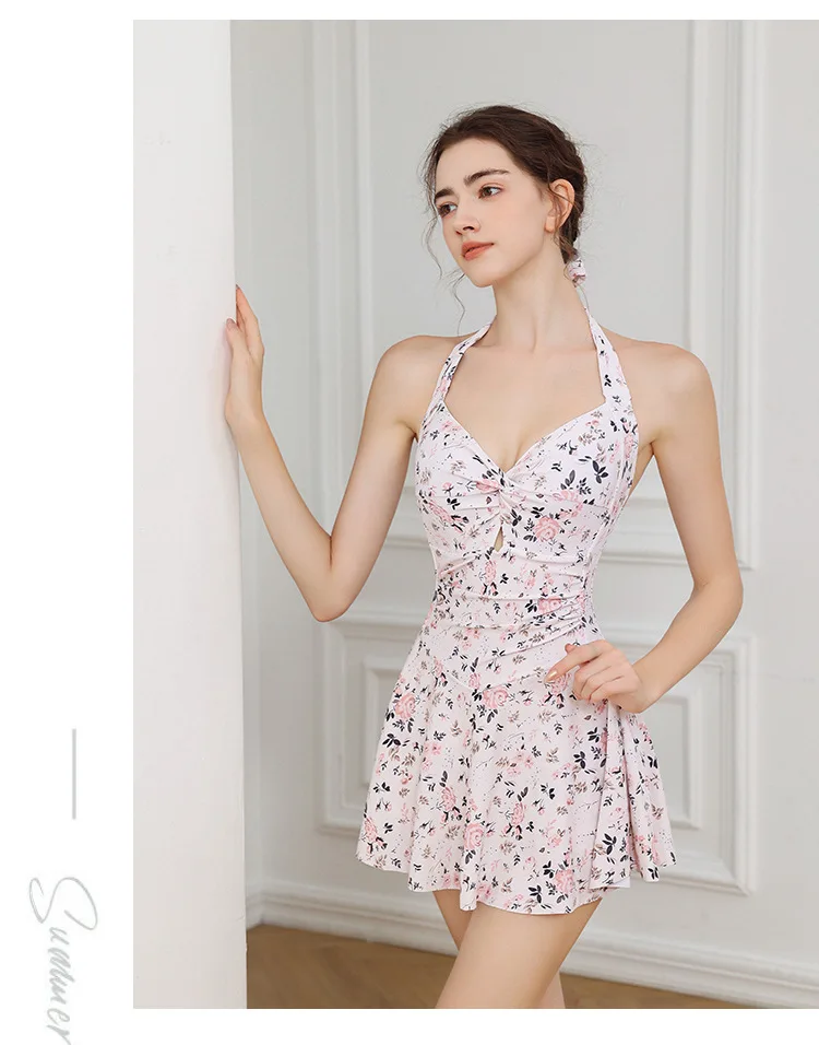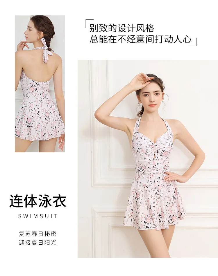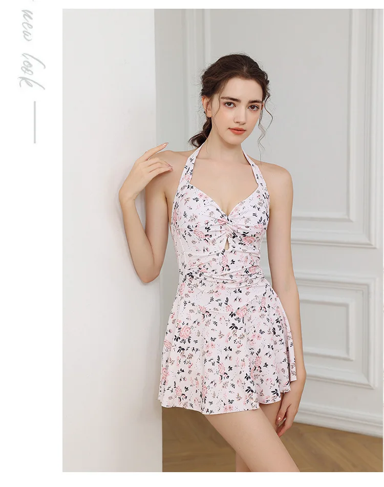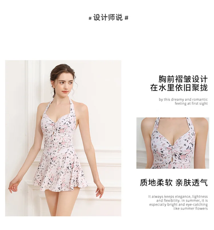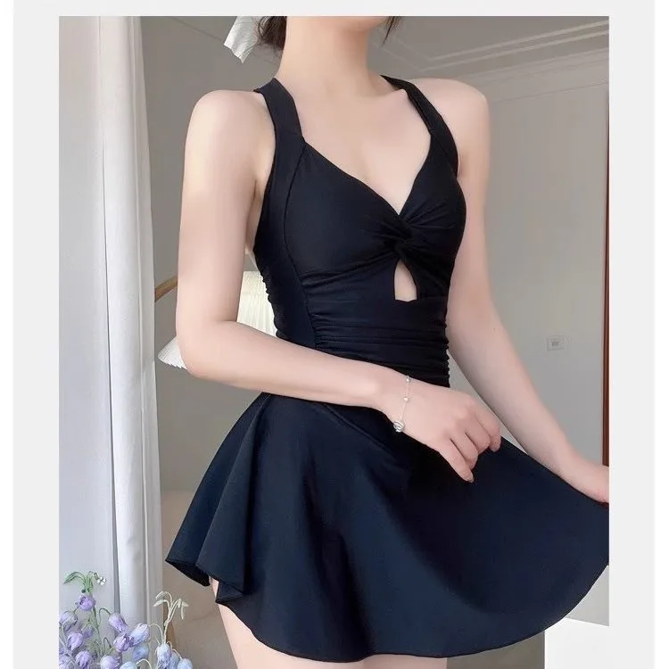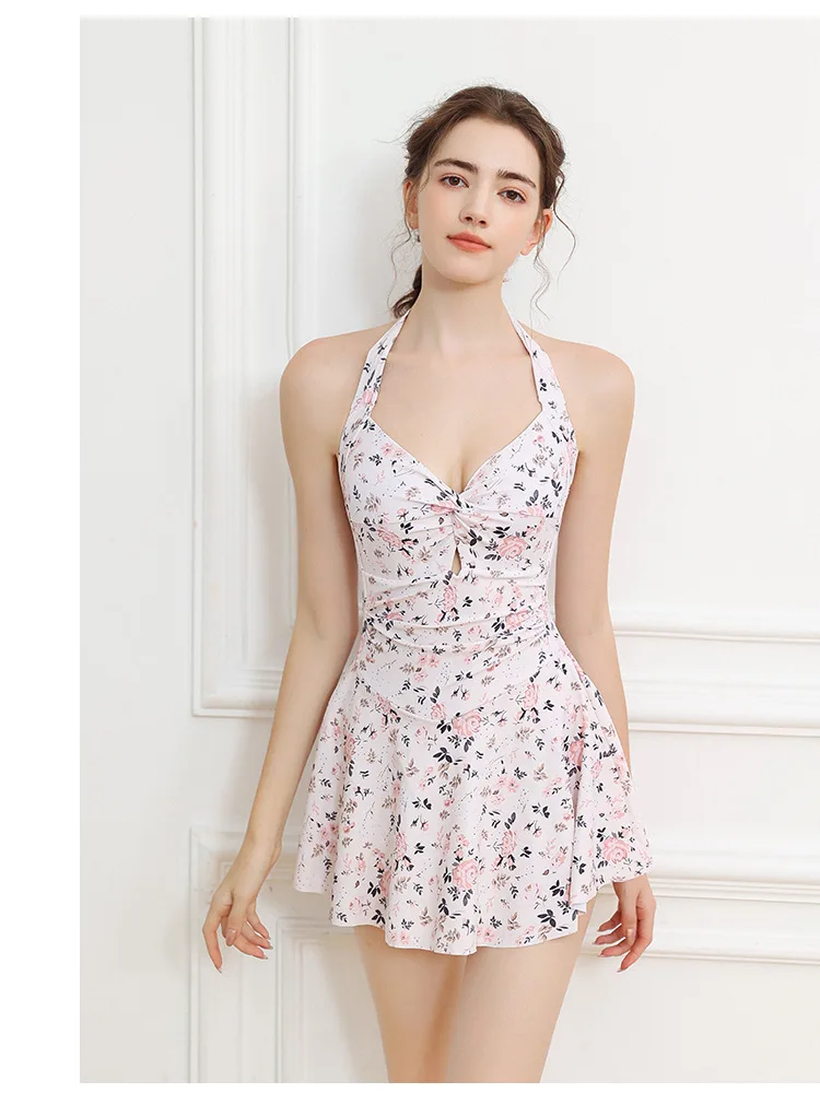 2024 Style Shell Women One Piece Swimsuit With Skirt Sexy High Cut Long Skirt Holiday Party Dress Beachwear Bathing Suit Female