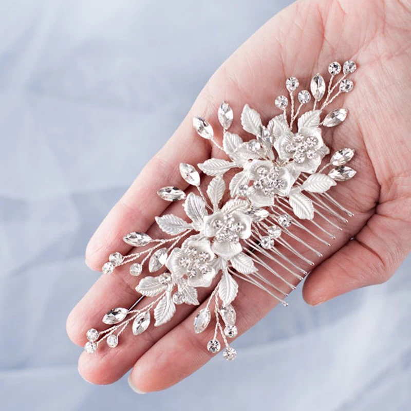 Flower Headband Wedding Hair Accessories Silver Rhinestone Flower Bridal Tiara Headband Hair Comb Hairpins Wedding Hair Jewelry Headpiece