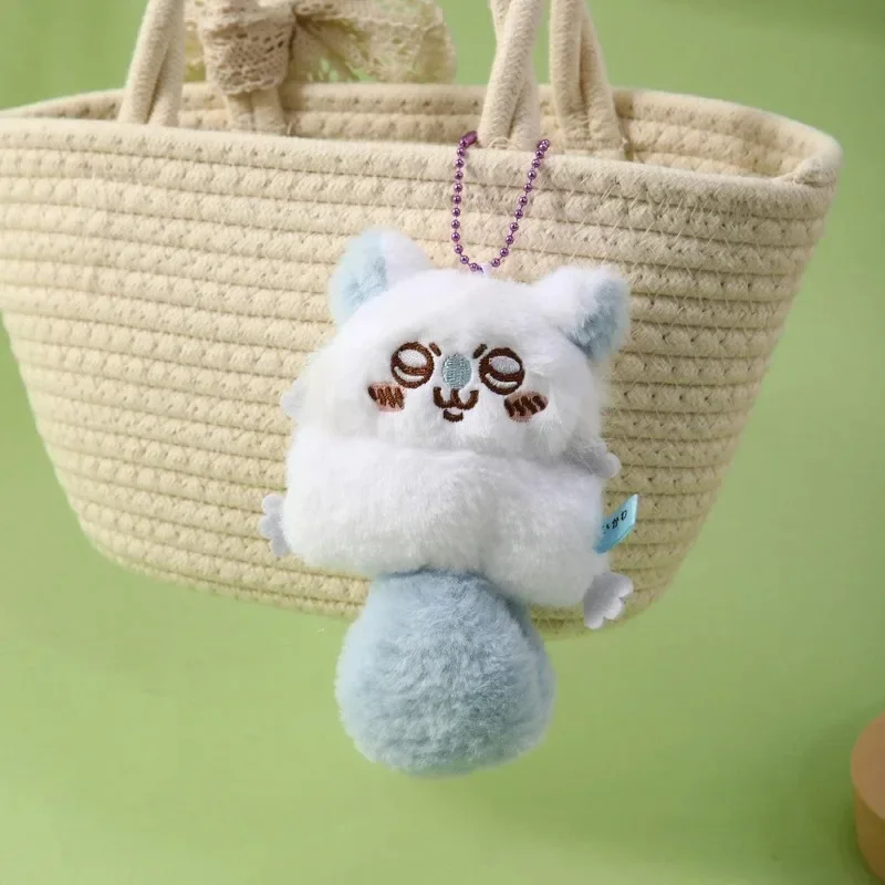 Fluffy Chiikawa Momonga Plush Keychain Flying Squirrel Mascot Pendant Cute Anime Stuffed Toy Bag Accessory Gift for Backpack
