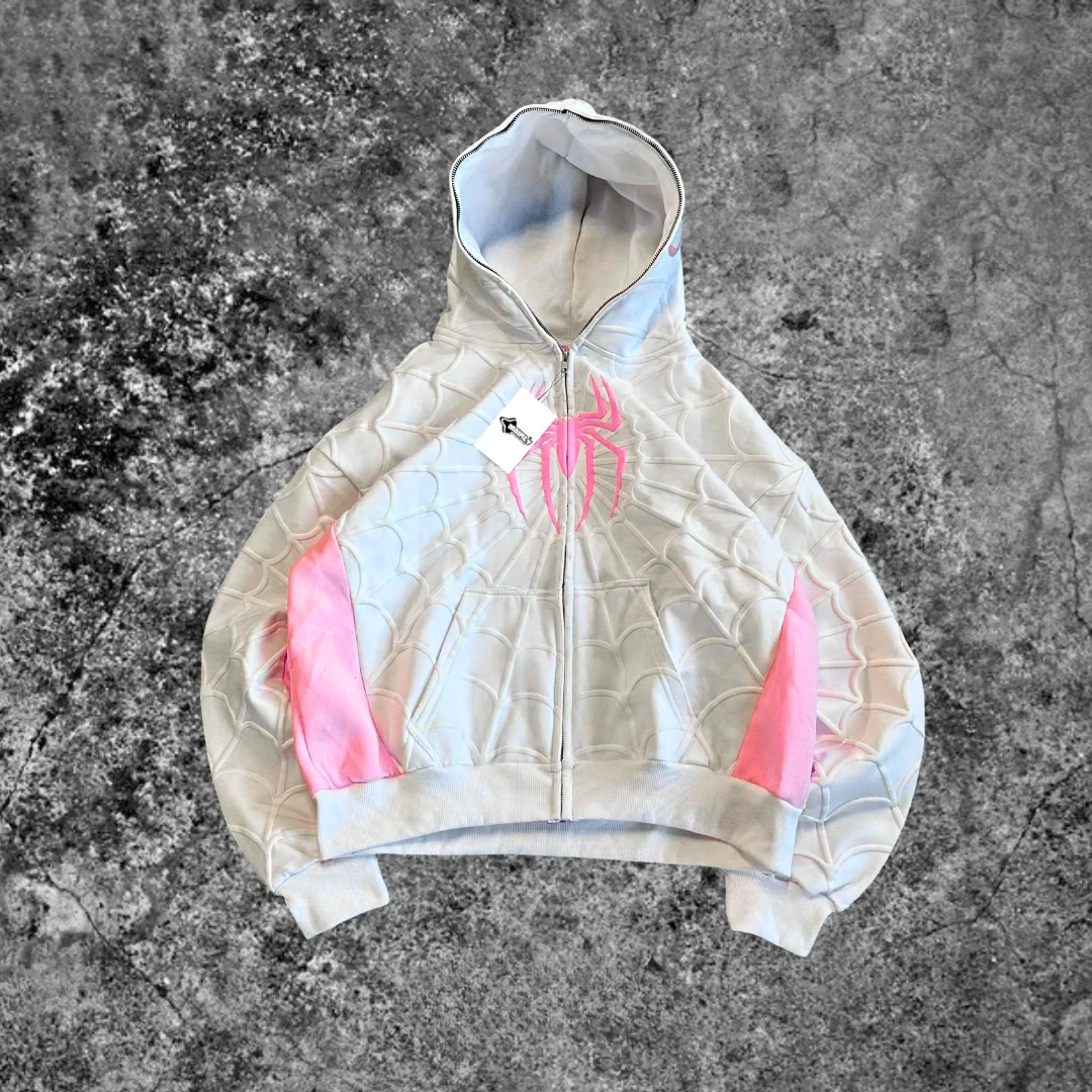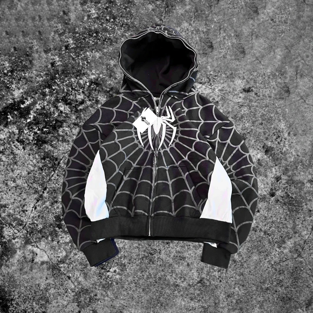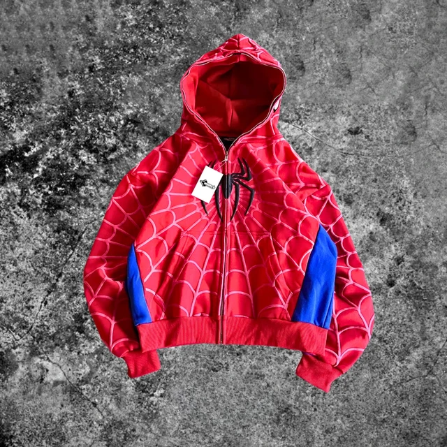 Foam printing Y2k clothing Spider web Red hoodie sweatshirt zipper warm Harajuku punk grunge Women Hip