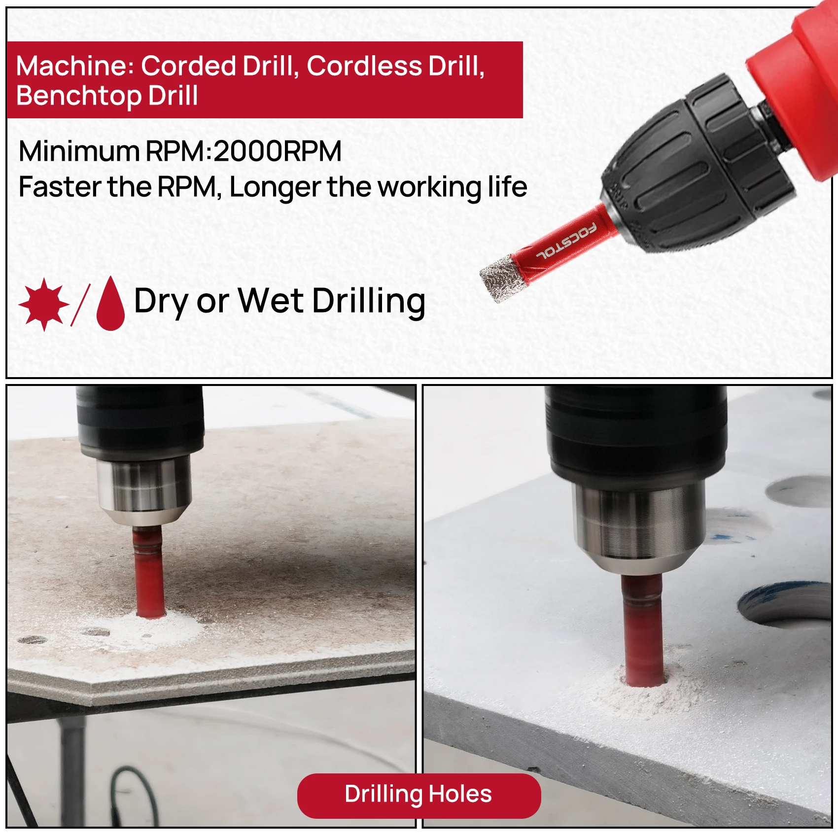 Application:Suitable for drilling tiles/ceramics, granite and marble…