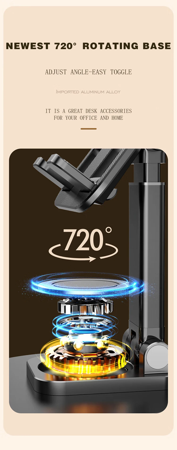 720 Rotating Aluminum Portable Tablet Stand for iPad Adjustable Flexible Folding Lazy Desktop Live Cell Phone Holder Mount
