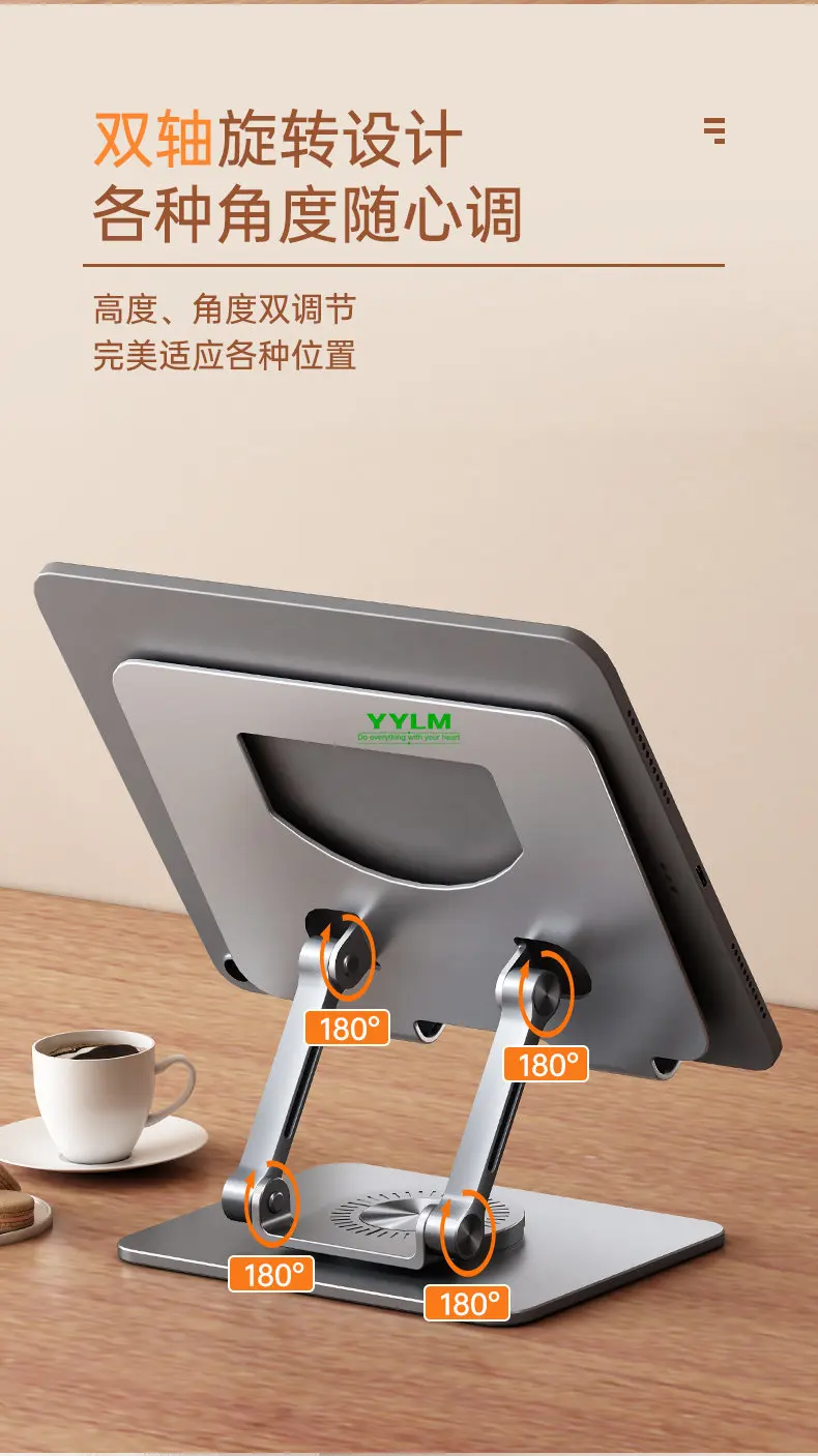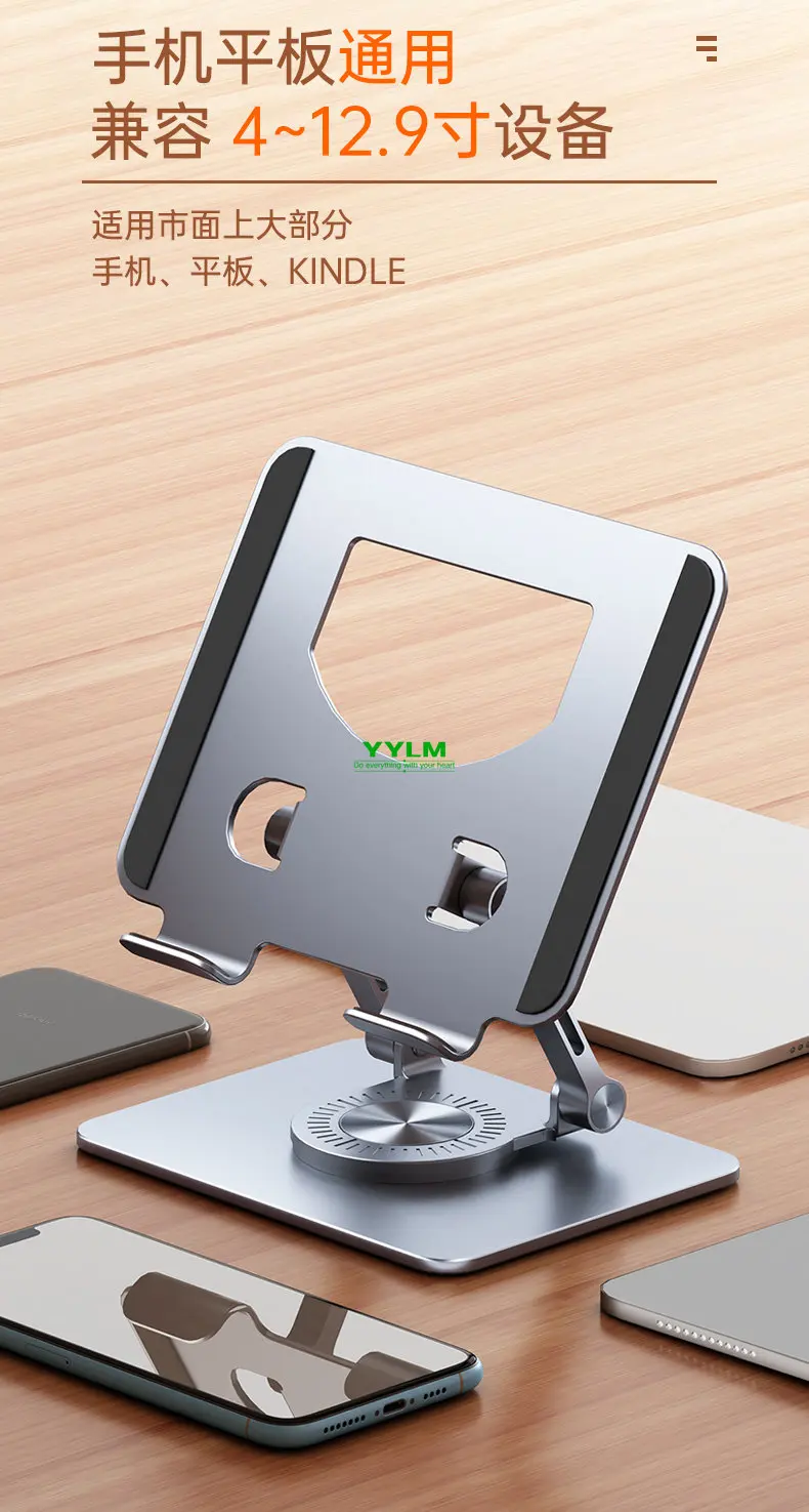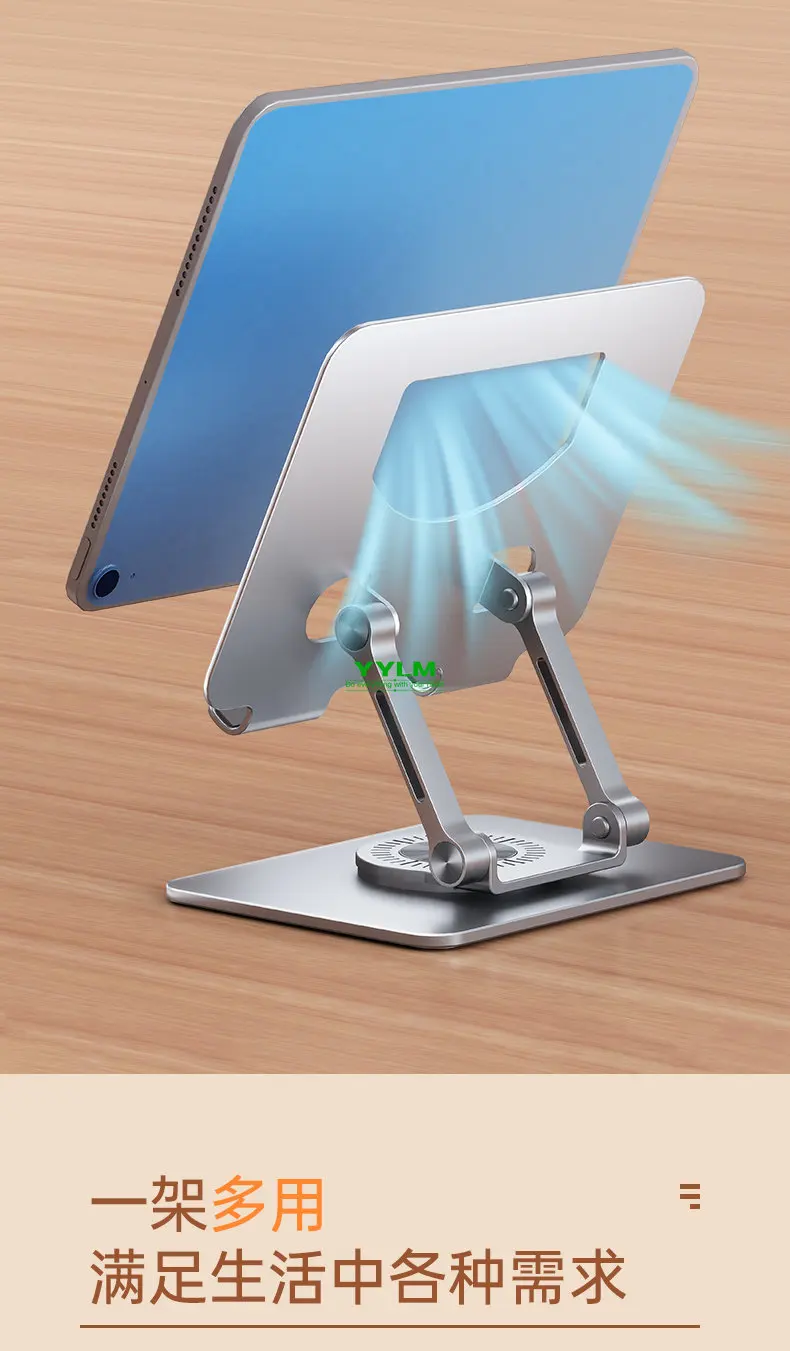 【360°Rotation】With a 360°rotating base, this tablet swivel stand turns your tablet into a desktop monitor, making it easy for you to draw, write, read, and share 【Wide Compatibility】 This tablet stand is compatible with various devices, including iPad/ iPad Air/ Pro/ Mini, Samsung Galaxy Tab, Android tablets, smartphones, etc 【Broad Application】The tablet dock can be used for cooking tutorials, office meetings, studying online classes and many more applications 【Adjustable & Flexible】The two-shaft structure increases the stability of this tablet holder and makes it adjustable in height. Additionally, this tablet stand is foldable and portable 【Refined Craftsmanship】 Made of premium aluminum alloy and equipped with silicone pads, this tablet drawing stand holds your device in position whilst protecting it from scratches and preventing it from sliding