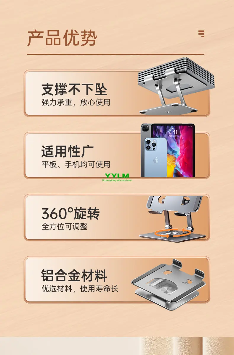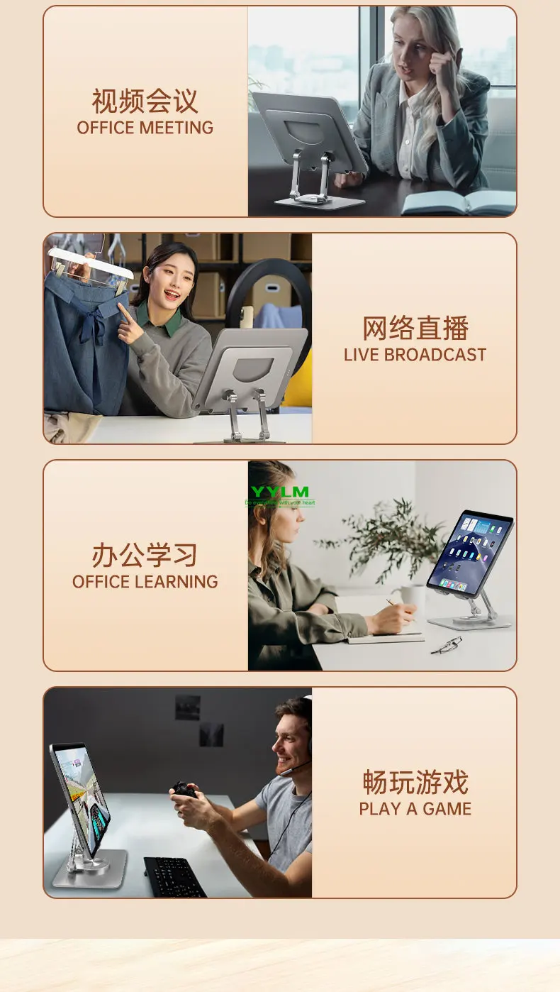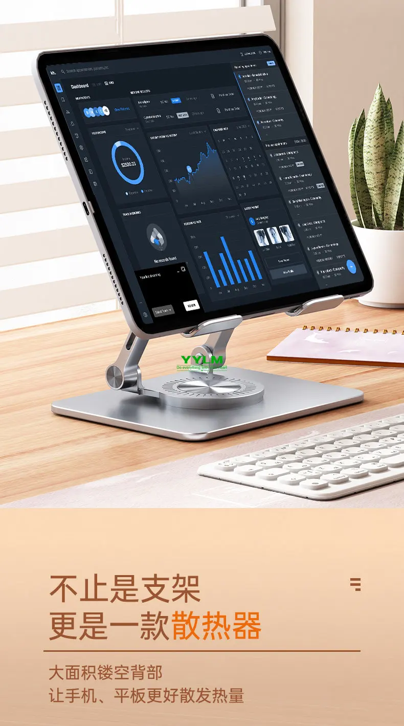 【360°Rotation】With a 360°rotating base, this tablet swivel stand turns your tablet into a desktop monitor, making it easy for you to draw, write, read, and share 【Wide Compatibility】 This tablet stand is compatible with various devices, including iPad/ iPad Air/ Pro/ Mini, Samsung Galaxy Tab, Android tablets, smartphones, etc 【Broad Application】The tablet dock can be used for cooking tutorials, office meetings, studying online classes and many more applications 【Adjustable & Flexible】The two-shaft structure increases the stability of this tablet holder and makes it adjustable in height. Additionally, this tablet stand is foldable and portable 【Refined Craftsmanship】 Made of premium aluminum alloy and equipped with silicone pads, this tablet drawing stand holds your device in position whilst protecting it from scratches and preventing it from sliding