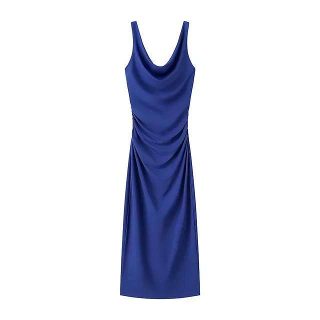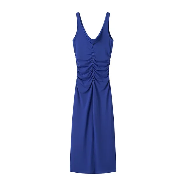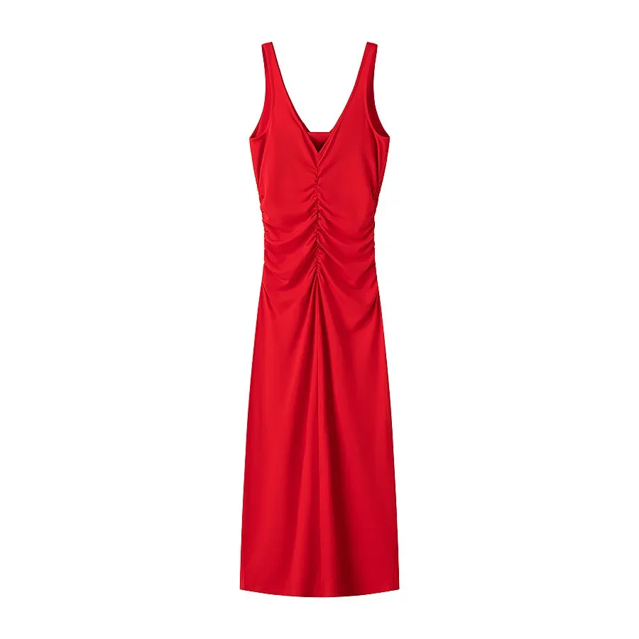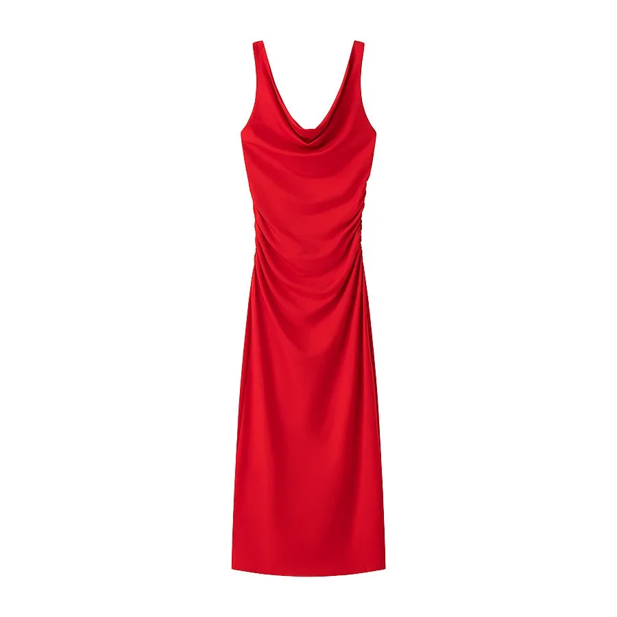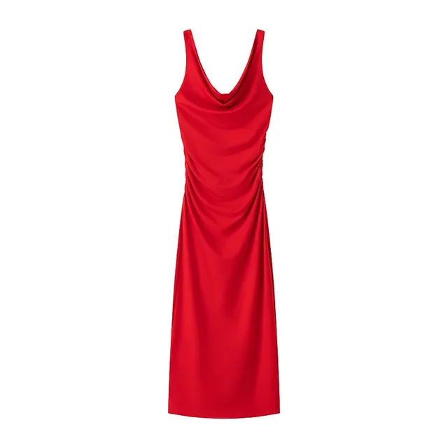 • Ruched Embellished Design : The Ruched Embellished Midi Strap Dress features a unique ruched design, adding a touch of elegance and sophistication to your wardrobe.