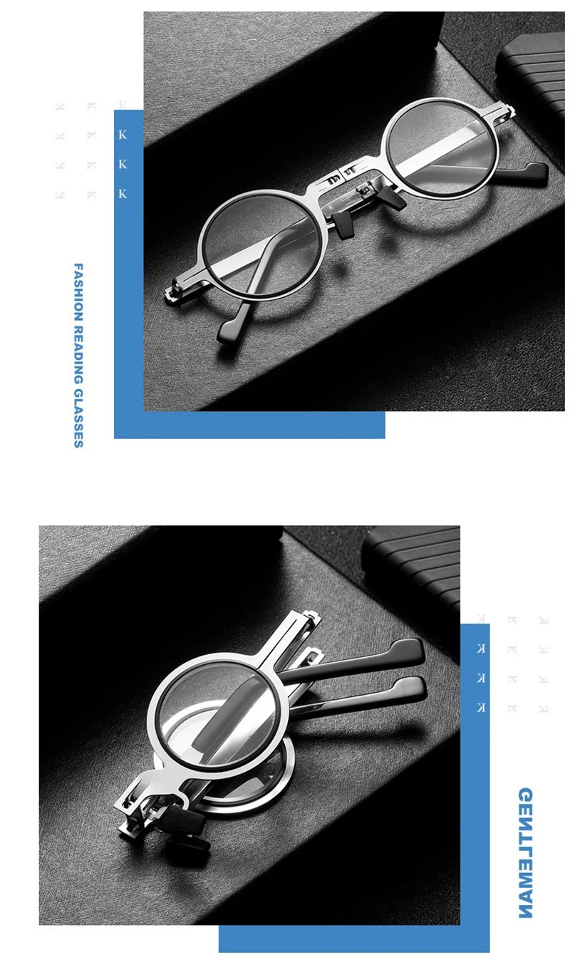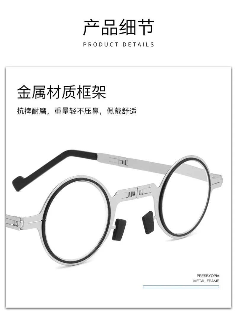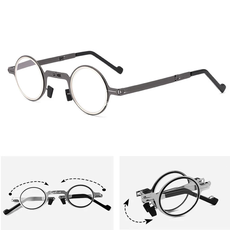 Folding anti blue-ray reading glasses For Women Fashionable Cat Eye Round Frame Portable Ultra-thin