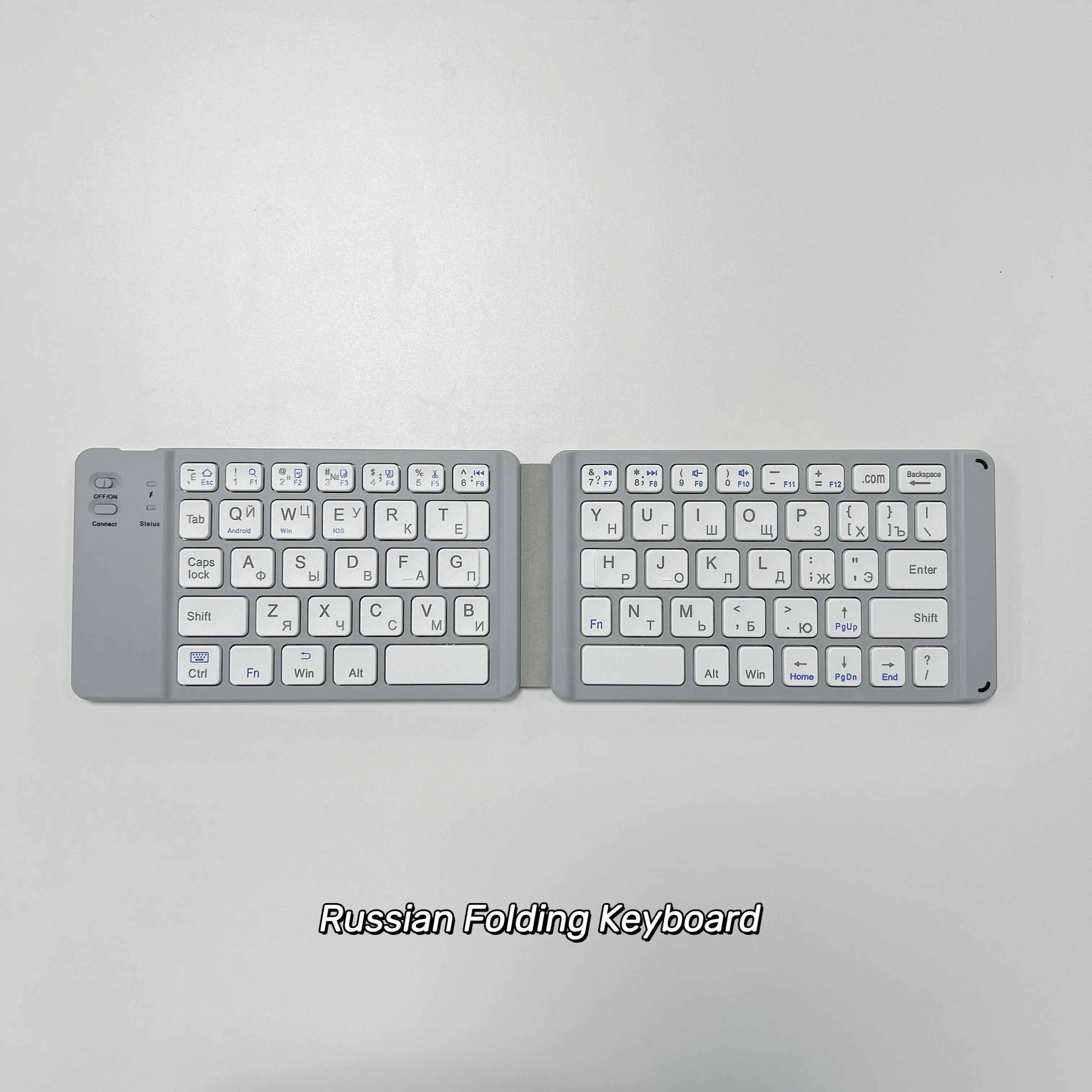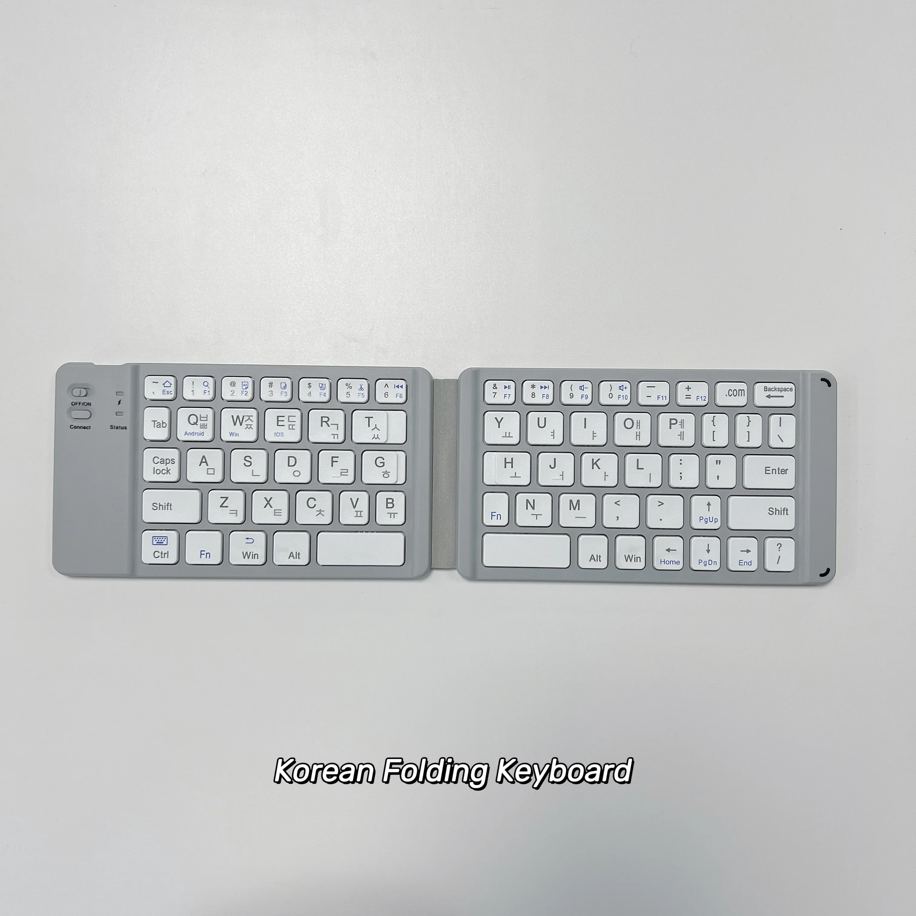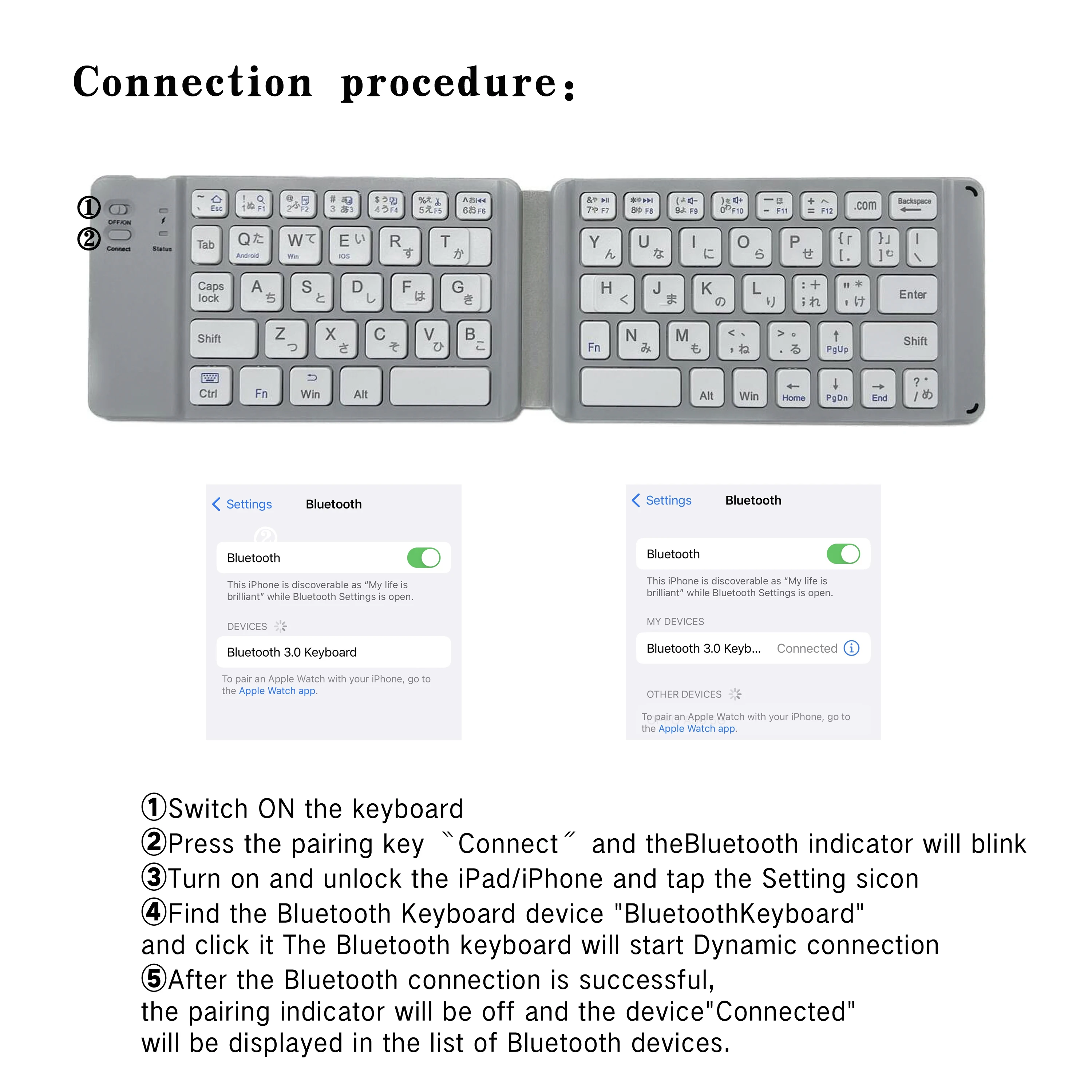 This keyboard is connected via blue-tooth 3.0, please power on the keyboard with the button.