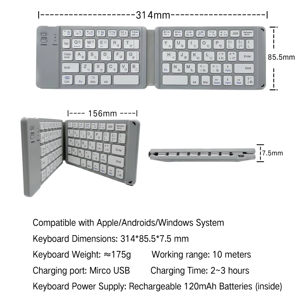 Mini Portable Rechargeable Wireless Blue tooth Keyboard SPECIFICATIONS: