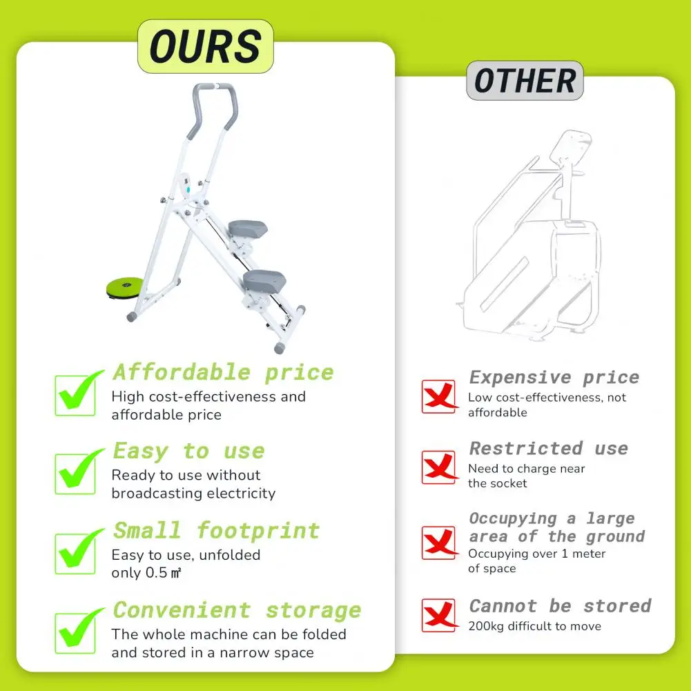 Scientifically Optimized Stride: This vertical stair stepper features an innovative design with a scientifically engineered stride length and range of motion. This ensures a comprehensive workout that protects your knees from strain while maximizing muscle engagement.