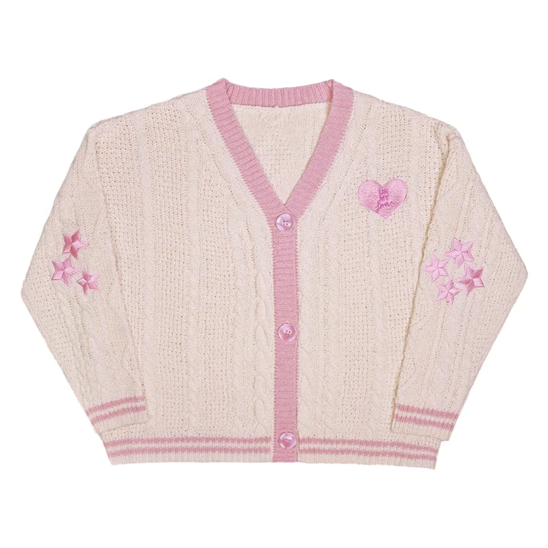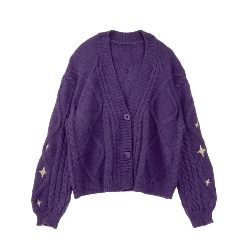 Folklore Cardigan with Star Embroidery Button Up Oversized Knit Jacket Cardigan Sweater Women Teenage