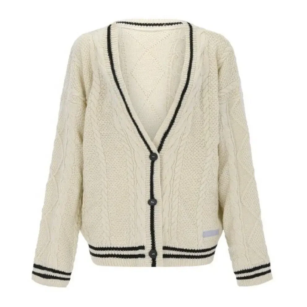 2024 Spring Woman's Fashion Casual Beige Cardigan Sweater Coat V-Neck Long Sleeves With Belt Knitted Crop Tops Streetwear