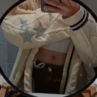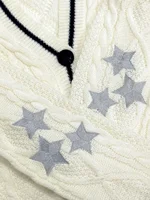 Folklore Cardigan with Star Embroidery Button Up Oversized Knit Jacket Cardigan Sweater Women Teenage