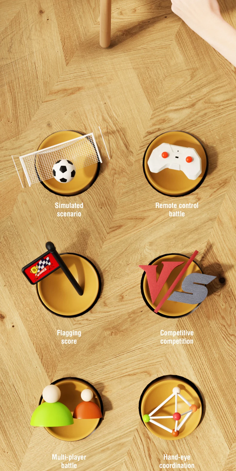 Chassis X4,ball seat X8, corner guards X4, remote control X4, fighter jet X4, guardrail X4, instruction manual X1, ball X2,