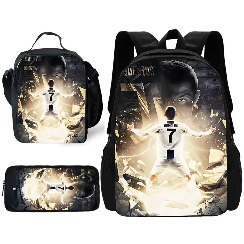 Football CR7 Star Child School Backpack with Lunch Bags Pencil Bags School Bags for R-Ronaldos Boys Girls Best Gift