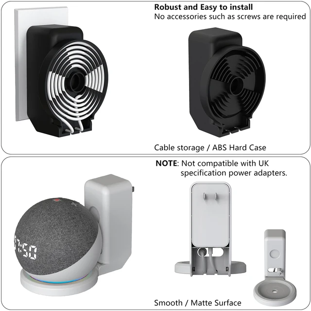 For Amazon Echo Dot 5 / 4th Generation & Echo Dot 5th Gen Kids Socket Bracket Cable Storage ABS Material