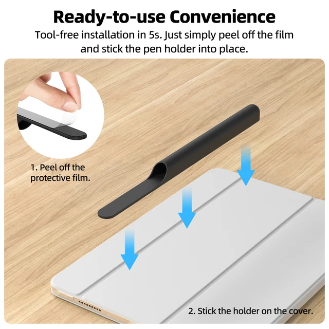 Keep your pen at hand and never misplace or lose it again. Install this stylus pen holder on your iPad’s back, case, or keyboard, and your stylus will always be with you on the go, easy to carry, and ready for use.