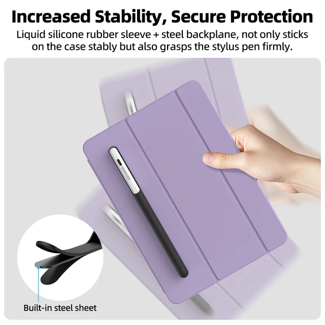 The built-in steel backplate covered with hydrogel has strong adhesive power to stick it securely on the case and grasp the stylus firmly even under violent shaking. With an elastic inclined opening design, it can be taken out or put in smoothly with a single hand.