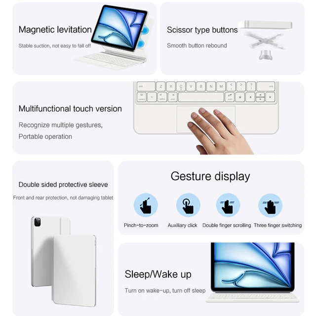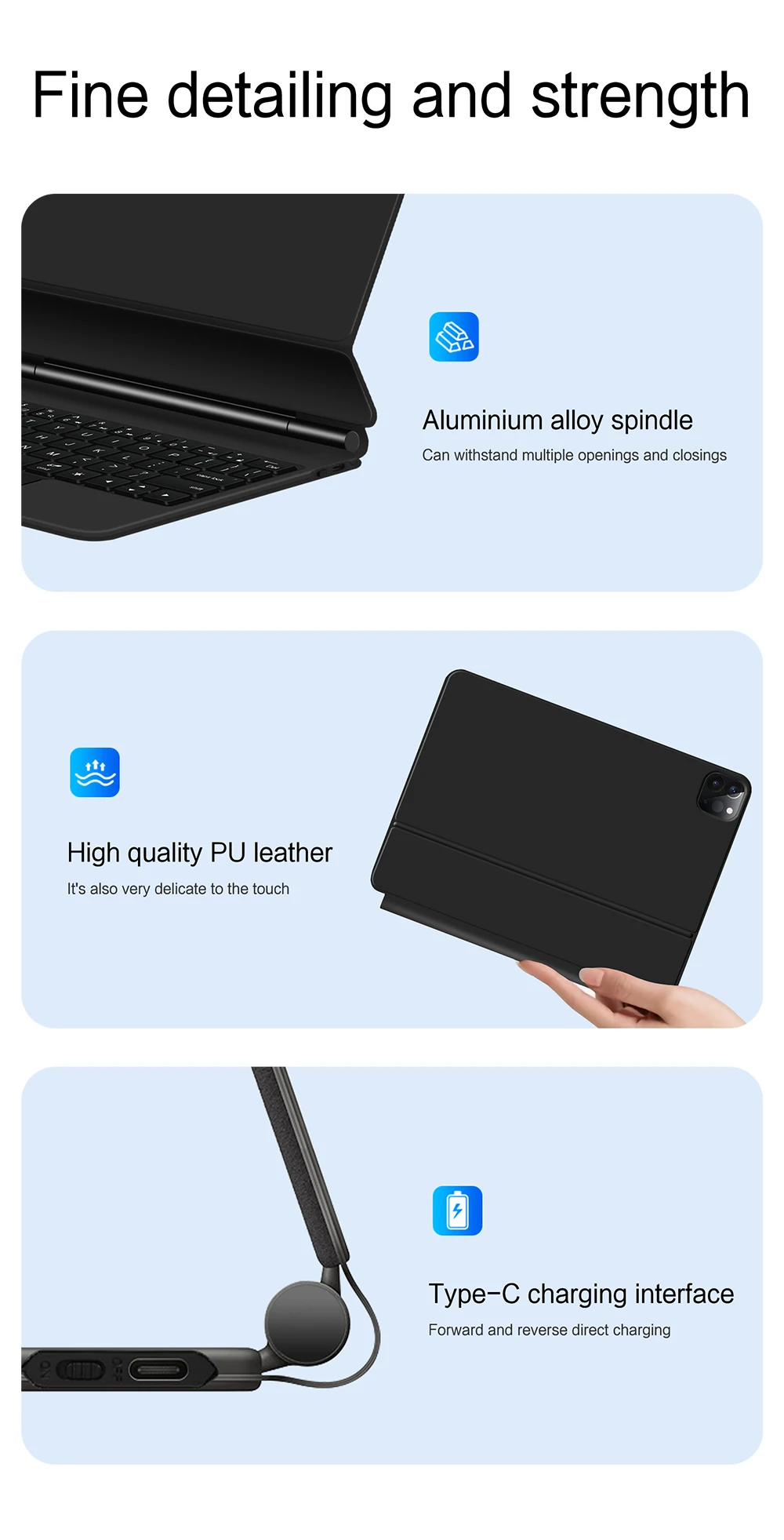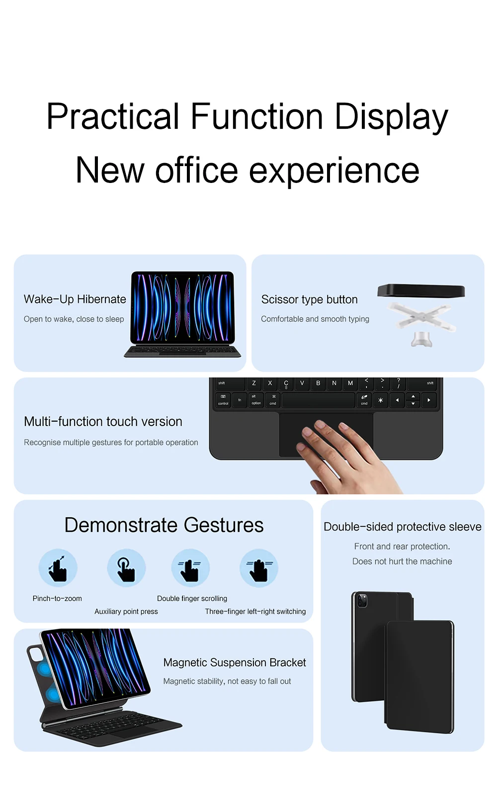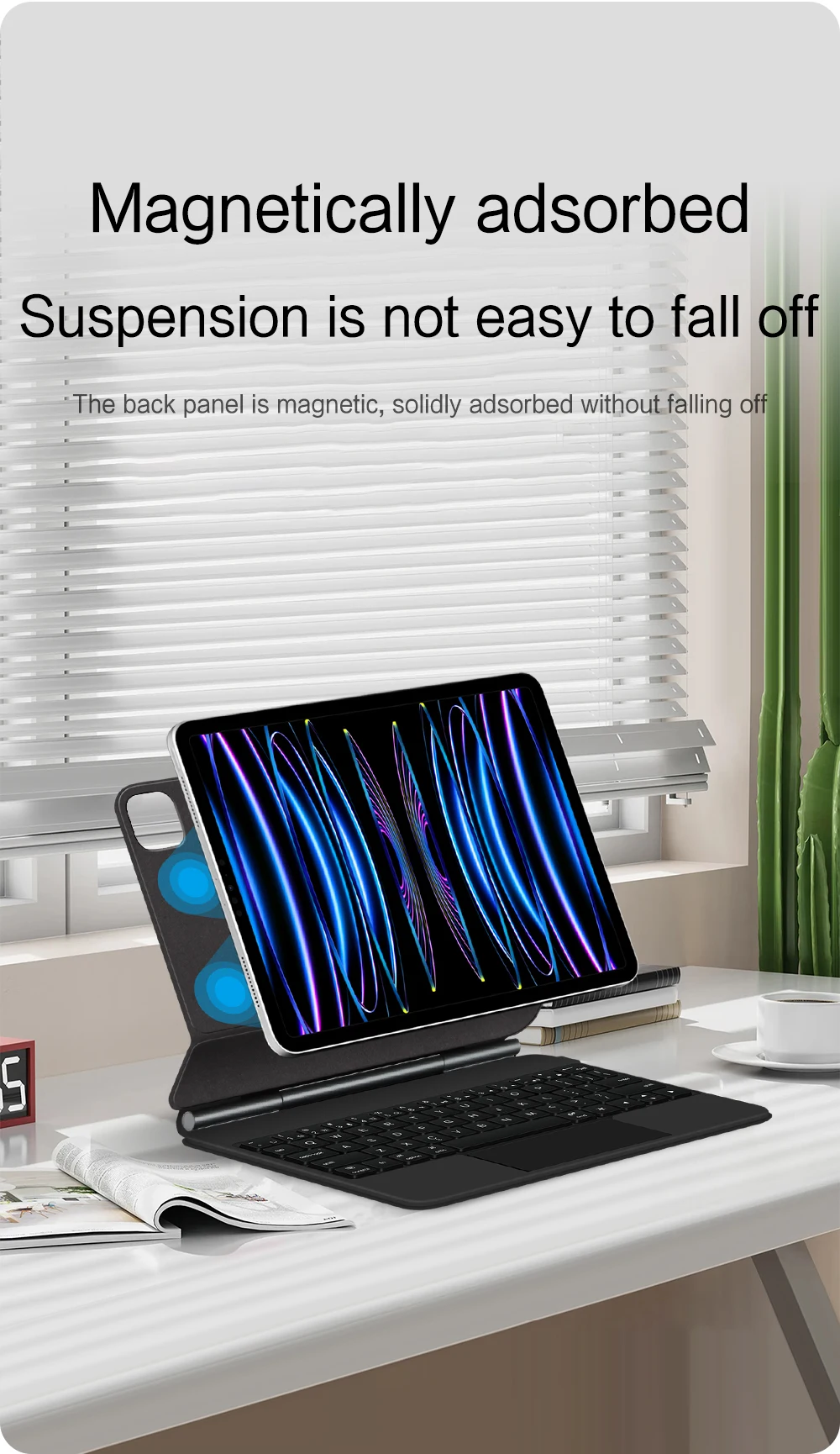 Magnetic separation, backlight, touch panel, multi angle support、Wireless Bluetooth connection