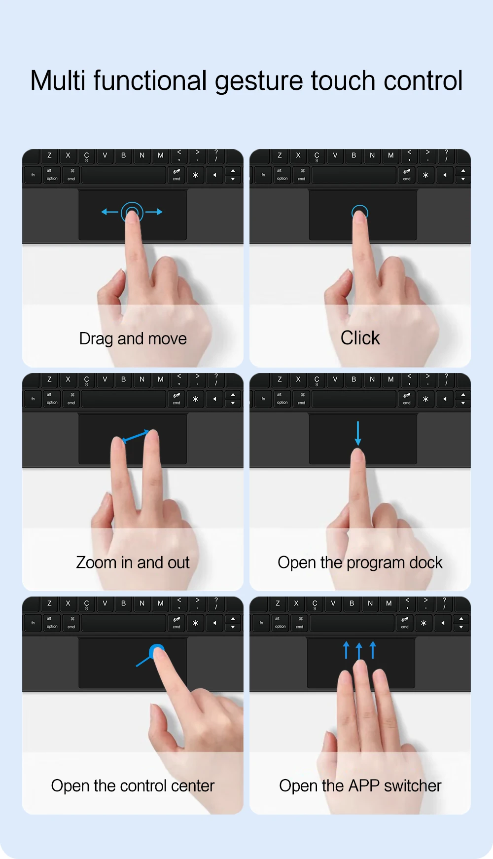 Note 1:You need to upgrade iPad iOS to version 15.0 or higher to use the touchpad.
