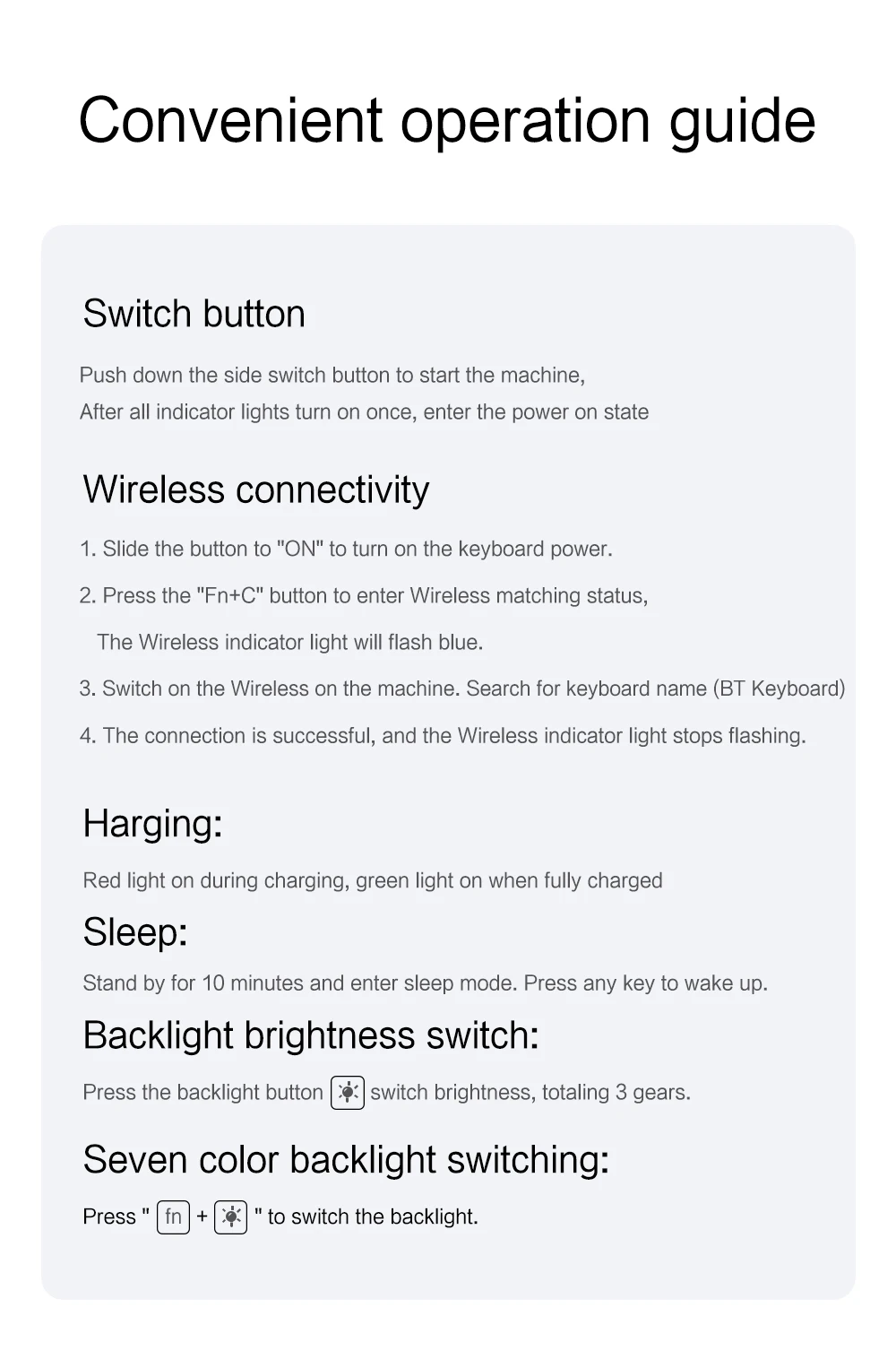 Note 3:After Open the Power, Please Click “Fn” and “C” 【Fn+C】Button Together to Open the Keyboard’s Bluetooth. It is Very Important.