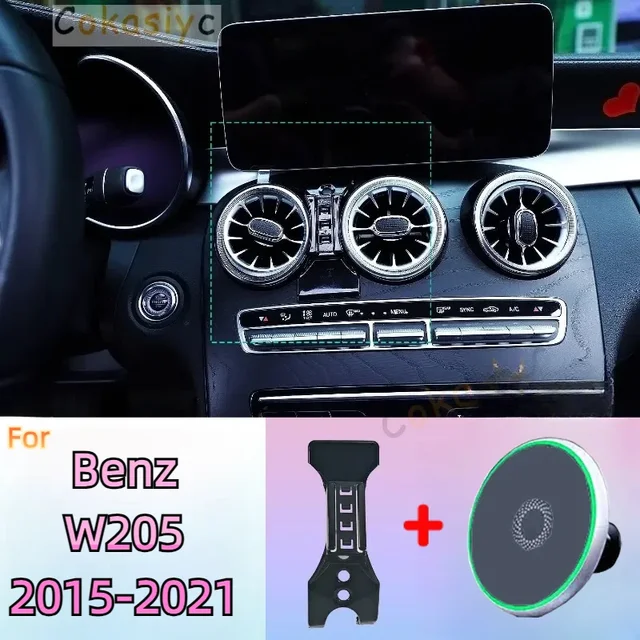 For Mercedes Benz C200 260 300 W205 2015-2021 Magnetic Phone Holder 15W Wireless Charging Phone Stand