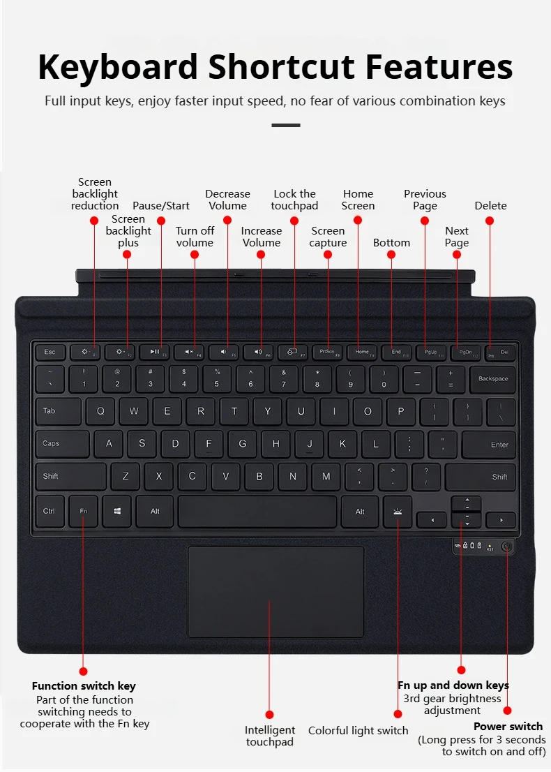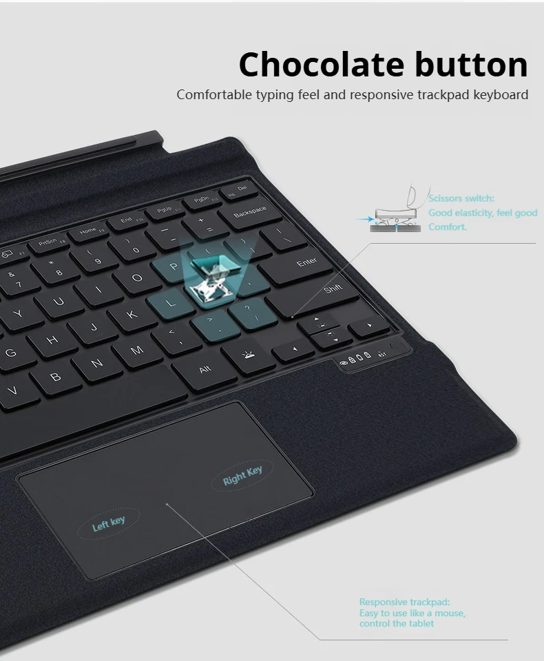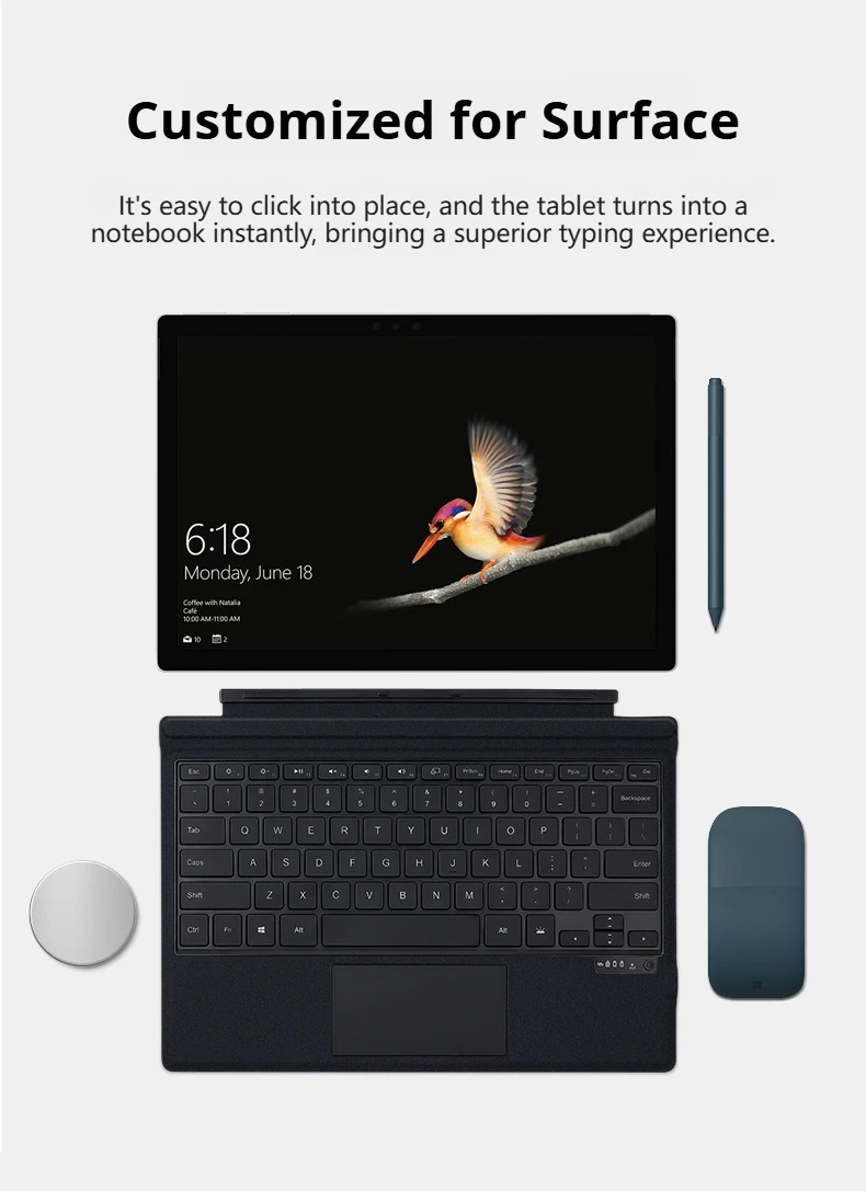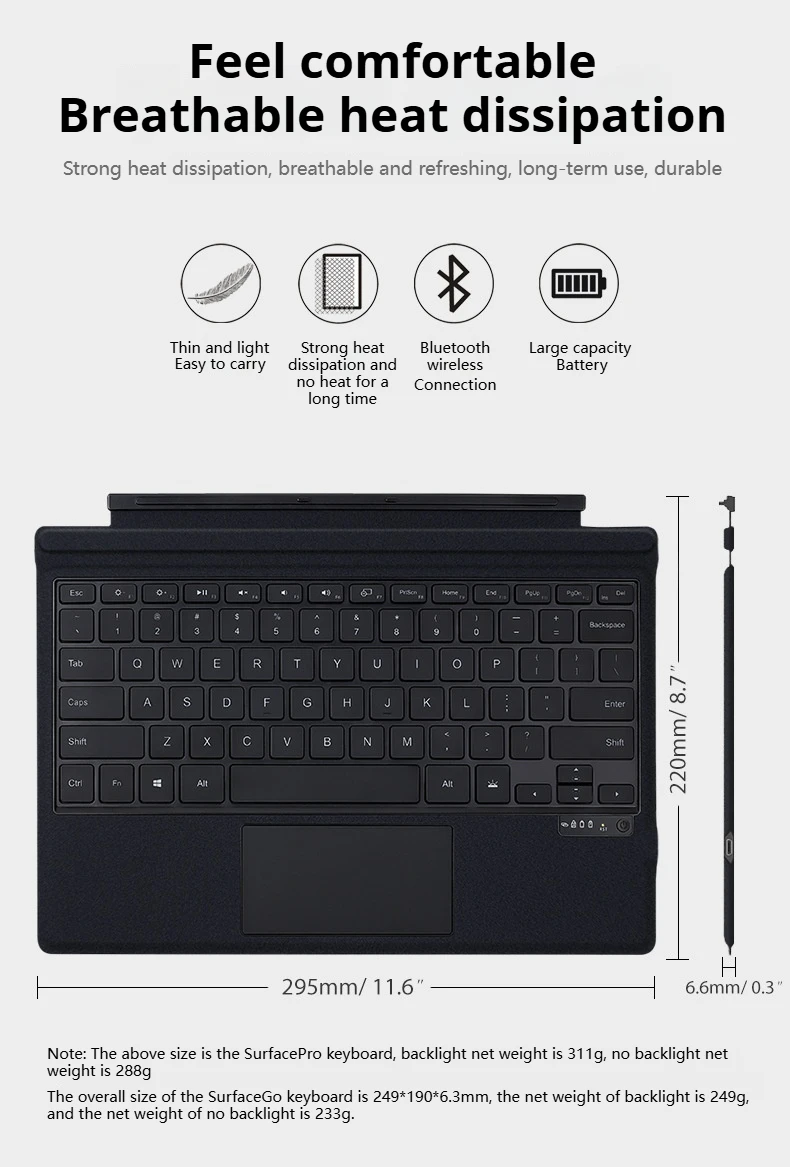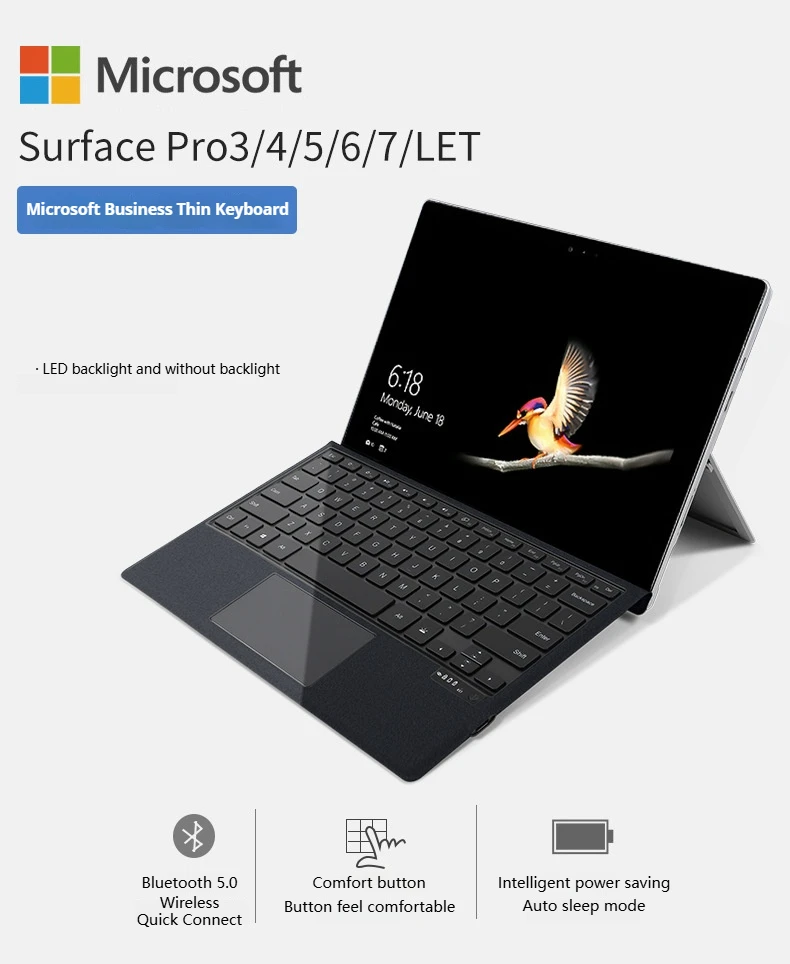 | Description | Suitable for Microsoft Surface Pro 9 8 X & 3 4 5 6 7 & Go1 2 3 Wireless Bluetooth Magnetic Backlit Keyboard Classic Edition Black Customisable for different country languages |
